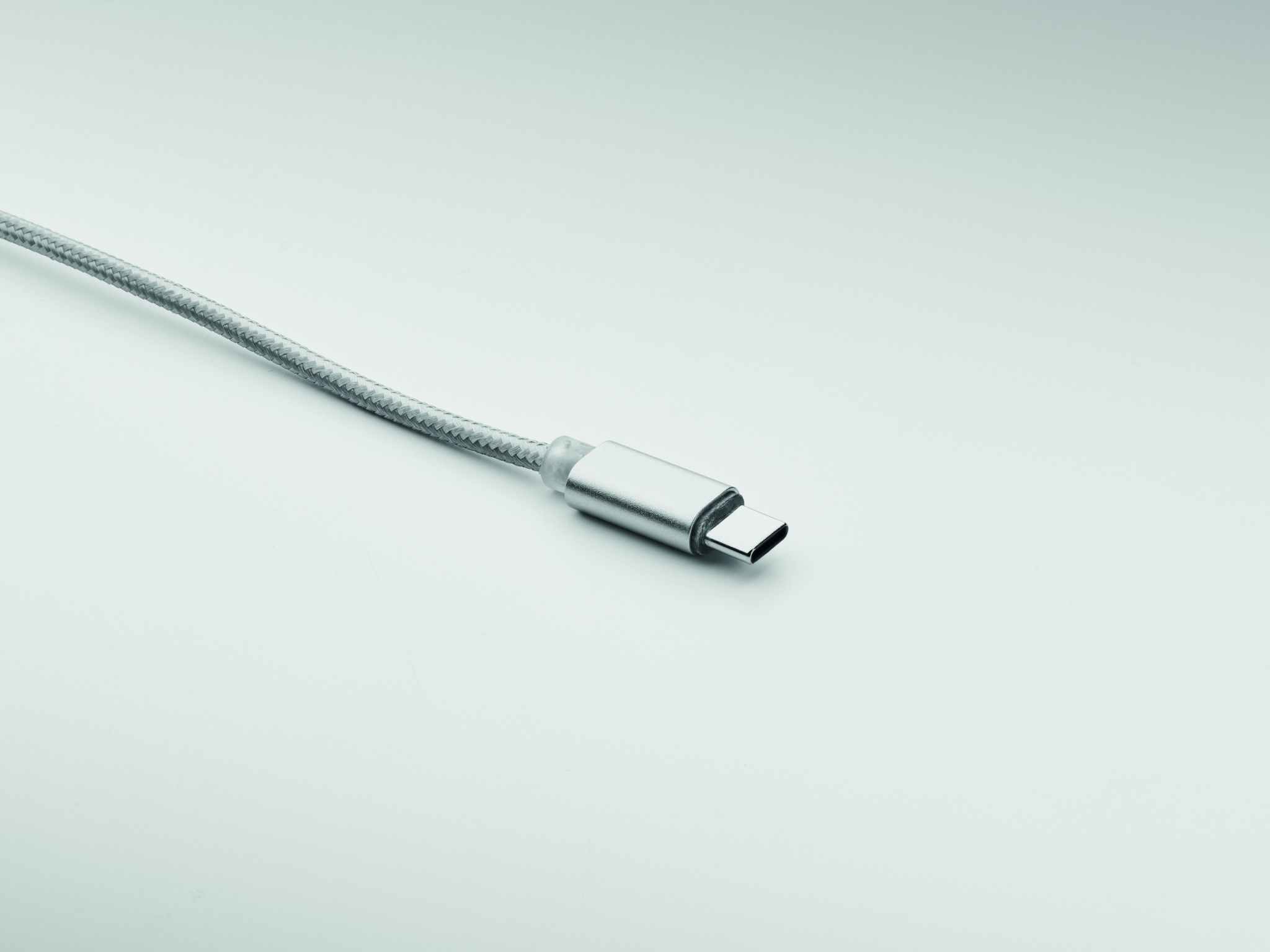 Alumīnija uzlādes kabelis ar ieeju: 2-in-1 Type-C & Type-A un micro-B (2 in 1 pin), Type C un micro B izvadi. Kabeļa garums: 120 cm.