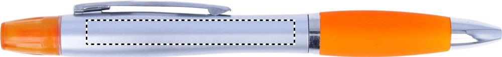 2 vienā plastmasas lodīšu pildspalva un marķieris ar sudrabainu satīna apdari un hromētiem furnitūras elementiem. Zila tinte.