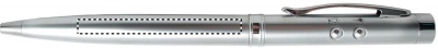 Daudzfunkcionāla sudraba pildspalva. Zilas tintes uzpilde, balta LED gaisma, sarkans lāzera rādītājs. Komplektā 3 elementu baterijas. Prezentēts koka kastītē. II drošības klase.