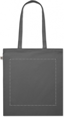 Organiskās kokvilnas iepirkumu maisiņš ar gariem rokturiem. 180 gr/m².
