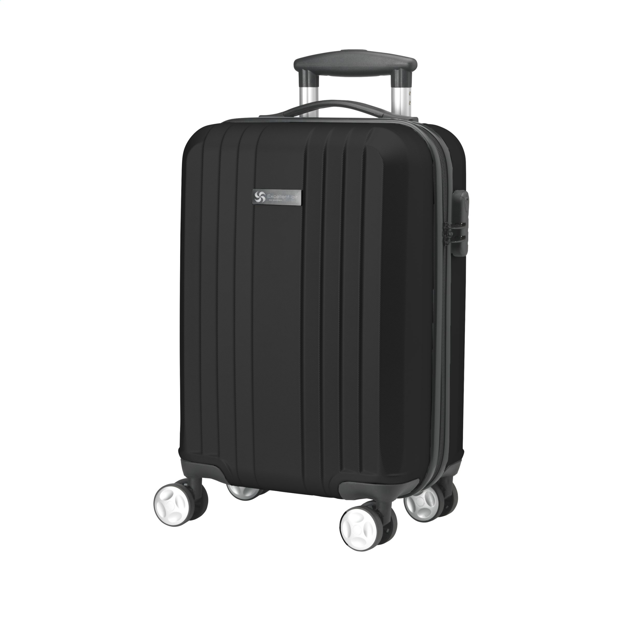 Moderns, viegls ratiņu futrālis, kas izgatavots no 100% ABS ar metālisku izskatu. Ar plašu galveno nodalījumu, četriem dubultajiem riteņiem, izvelkamu rokturi un slēdzeni. Ietilpība apm. 35 litri.