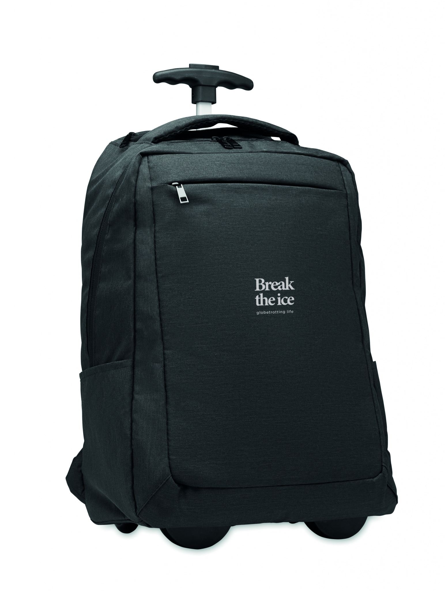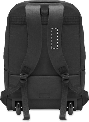 Logotrade korporatīvās dāvanas foto: Pārnēsājams mugursomas ratiņš ar riteņiem, izgatavots no 600D RPET poliestera.