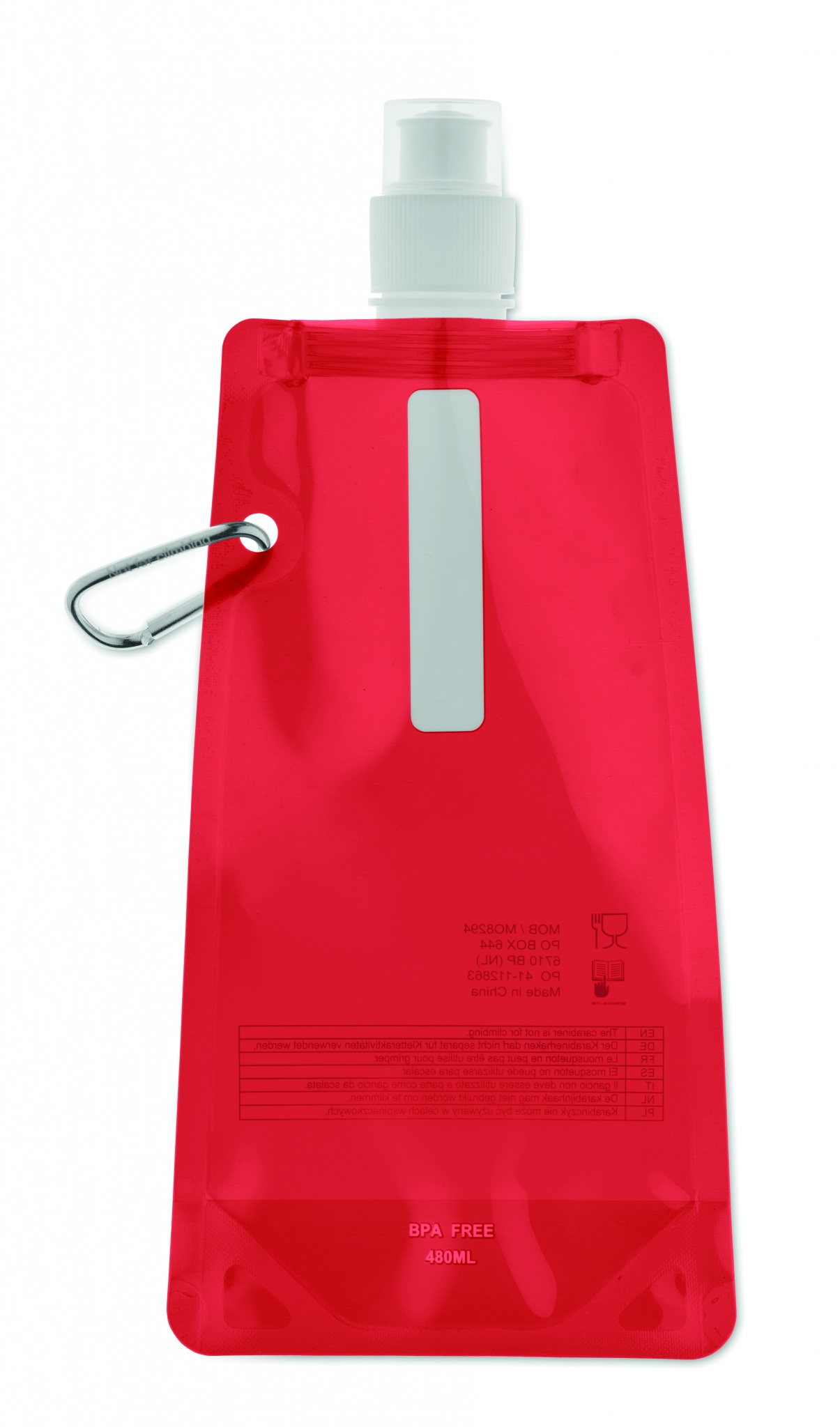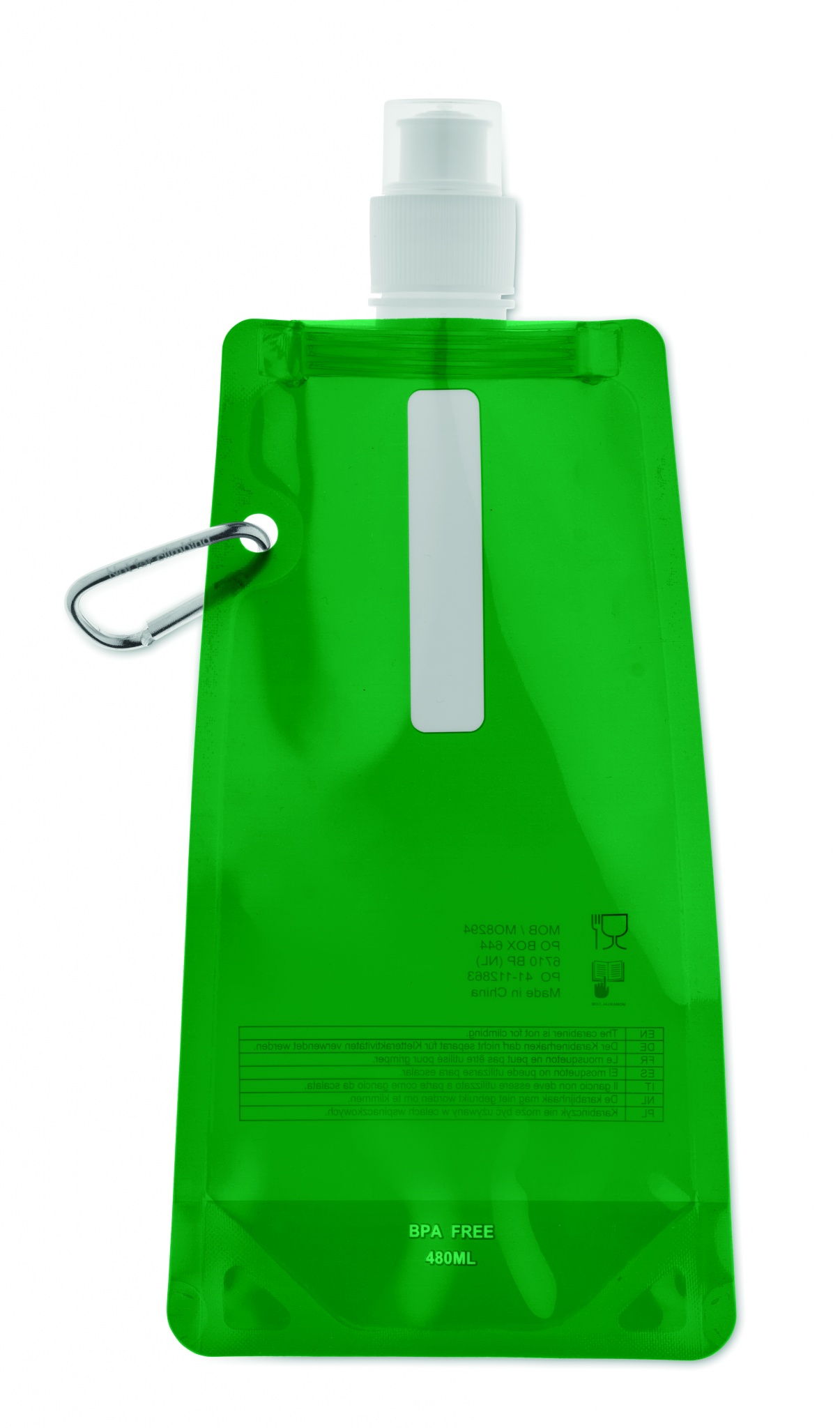 Salokāma ūdens pudele no PET, kas nesatur BPA ar alumīnija karabīni. Tilpums 480 ml. Bez noplūdes.