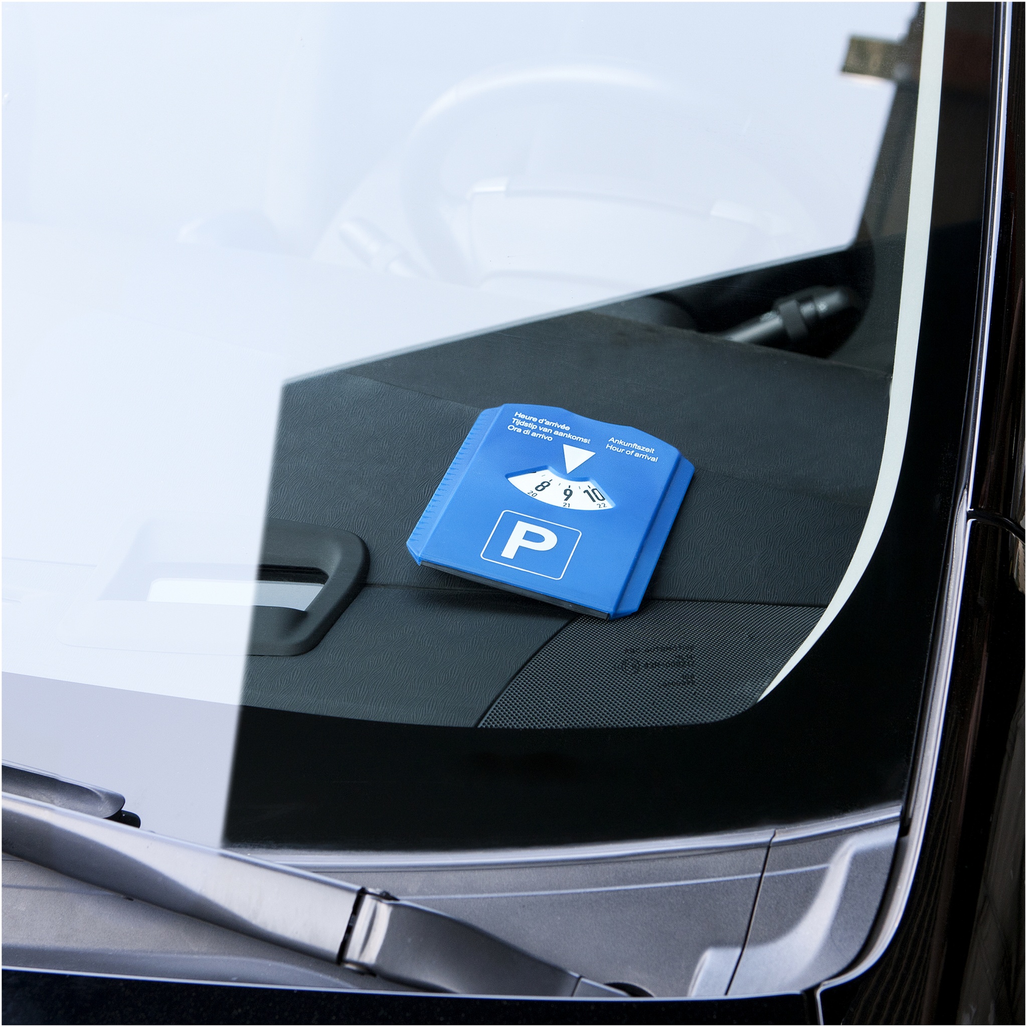 Parkošanās disks ar ledus skrāpi, gumijas tīrītāju, ratiņu monētu un riepu protektora dziļuma mērītāju. Diska aizmugurē ir liels balts logotipa laukums. Teksts “Ierašanās stunda” uz diska vāka ir holandiešu, angļu, franču, vācu un itāļu valodā. Noteikumi vietējā mērogā var atšķirties.