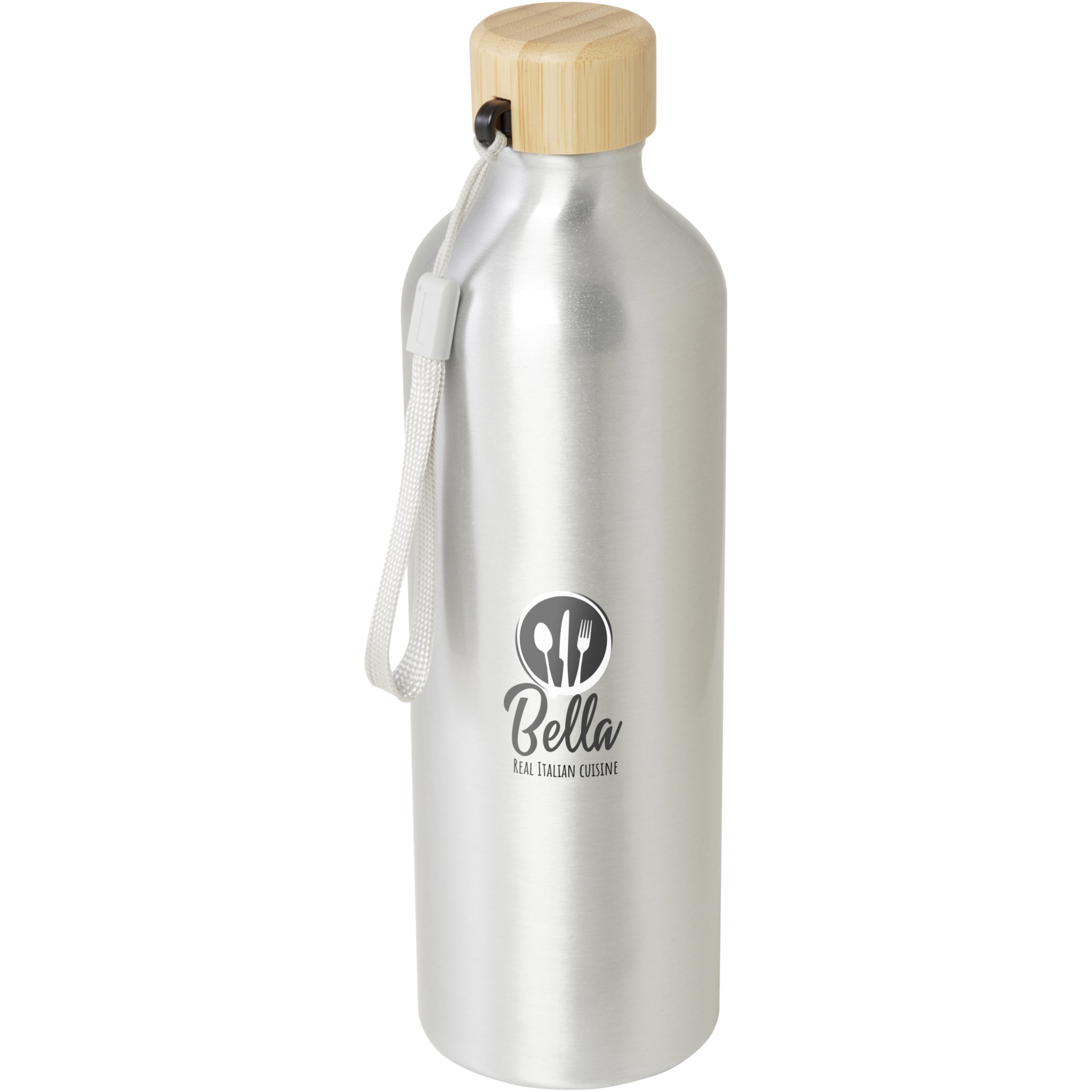 Бутылка для воды из переработанного алюминия, сертифицированного по стандарту RCS, со стильной бамбуковой крышкой. Эта легкая бутылка с одинарными стенками имеет ремень для удобной переноски. Бамбук производится из устойчивых, экологически и социально ответственных источников. Объем 770 мл. Только ручная мойка.