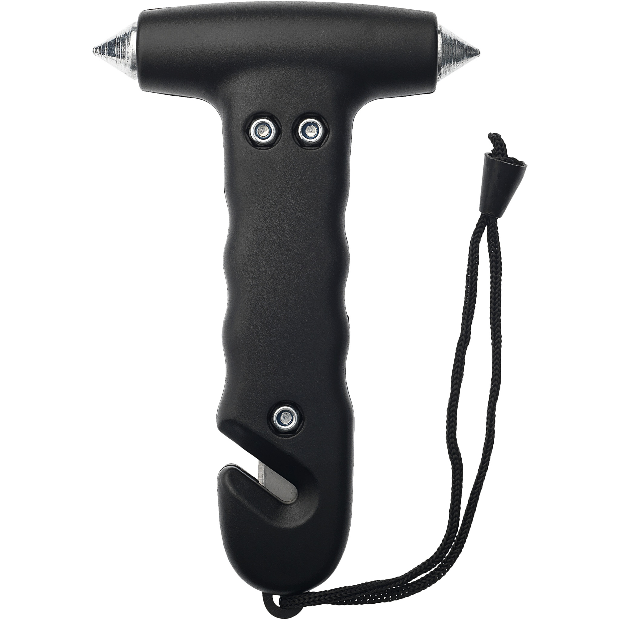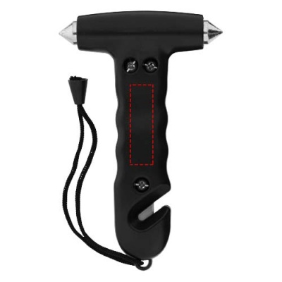 Аварийный молоток с ремешком на запястье и встроенным в ручку резаком. Два зазубренных молотка из закаленной стали для разбивания стекла и резак можно использовать в случае аварийной ситуации.