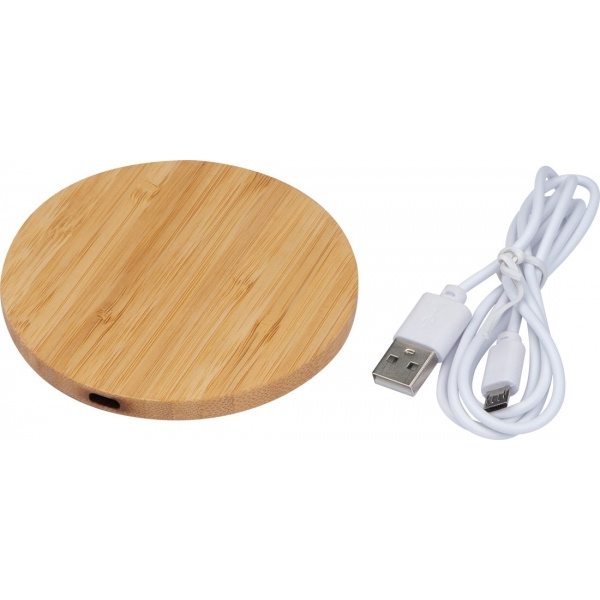 Круглое бамбуковое беспроводное зарядное устройство с зарядным кабелем, подходит для всех смартфонов с поддержкой QI. Мы разместим ваш логотип на зарядном устройстве.