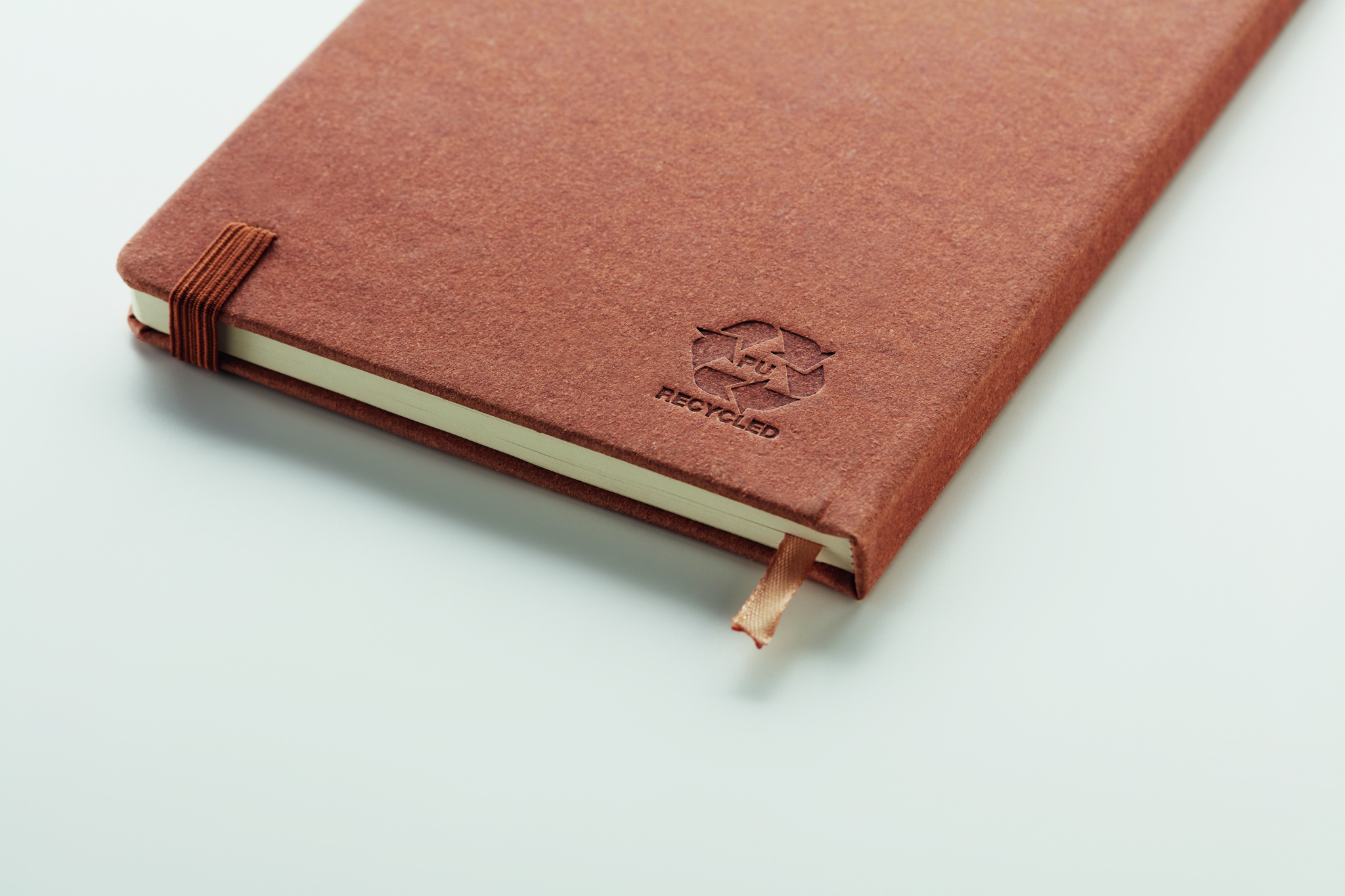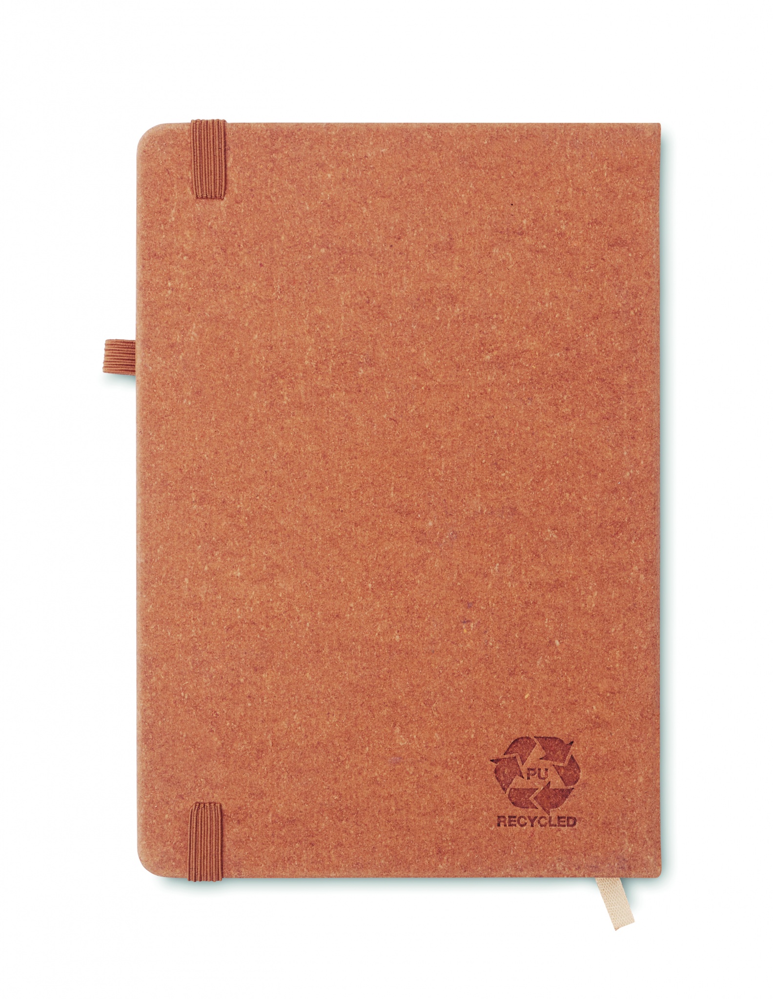 Блокнот формата A5 с обложкой из переработанного полиуретана и 80 линованными страницами. Блокнот на резинке.