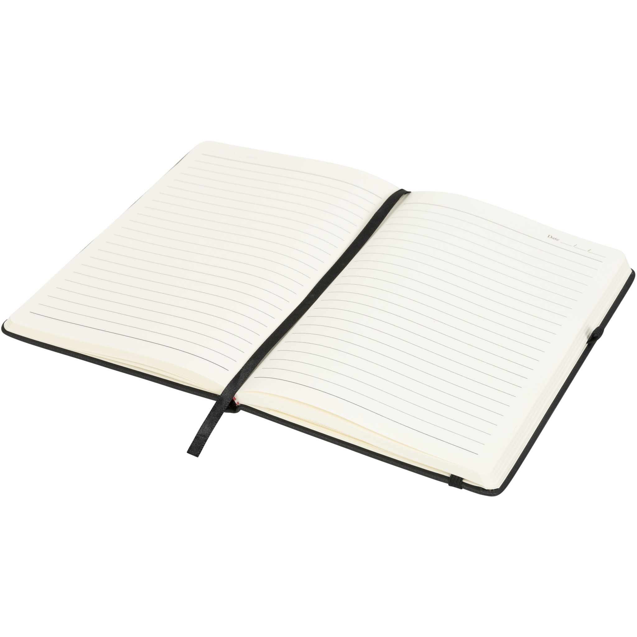 Блокнот Rivista отличается стильным современным дизайном с высококачественной обложкой, идеально подходящей для нанесения логотипа и информации вашей компании. Предлагаются современные цвета. Также предусмотрена эластичная застежка, держатель для ручки, лента-закладка и внутренний кармашек на задней стороне обложки. Содержит 128 листов линованной бумаги (70 г/м²) кремового цвета.