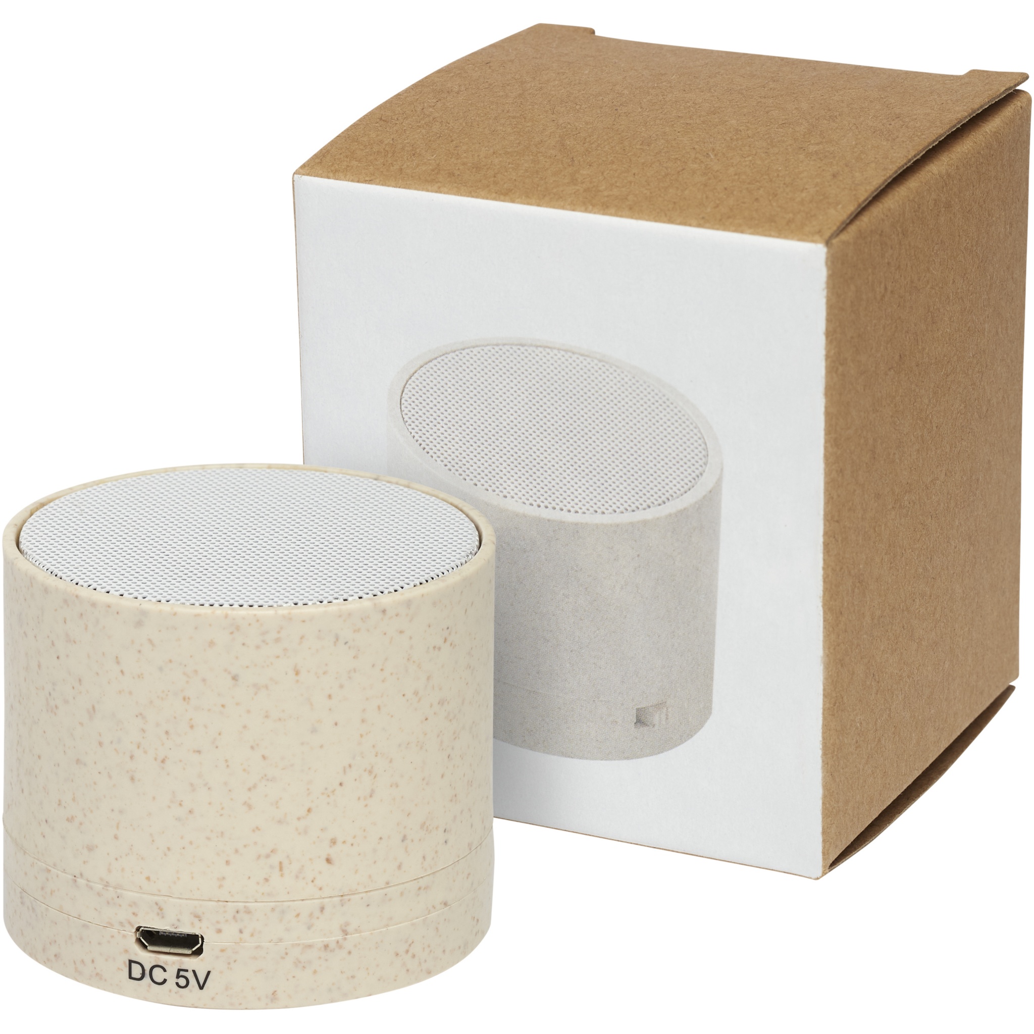 Футляр для колонки с каналом Bluetooth® изготовлен из смеси пшеничной соломы и пластика, что способствует снижению потребления пластика. Динамик обеспечивает кристально чистое звучание при длительности воспроизведения более 1,5 часов и максимальной выходной мощности звучания 3 Вт. Bluetooth® 5.0. Подарочная коробка и инструкция по эксплуатации на 100 % изготовлены из переработанной бумаги, сертифицированной FSC. В комплект входит кабель для зарядки микро-USB.