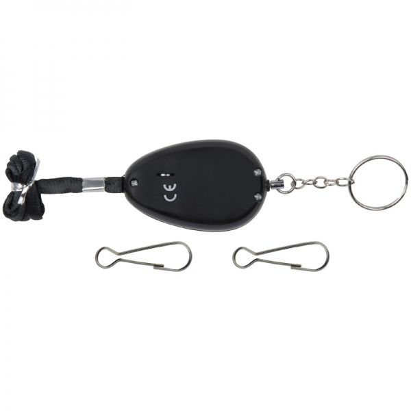 Карманную сигнализацию можно активировать, просто вытащив штифт на брелоке. Благодаря двум входящим в комплект предохранительным крючкам ее можно закрепить практически в любом месте. Включает черный шнурок и три батарейки LR45. Мы печатаем ваш логотип на одной стороне.
