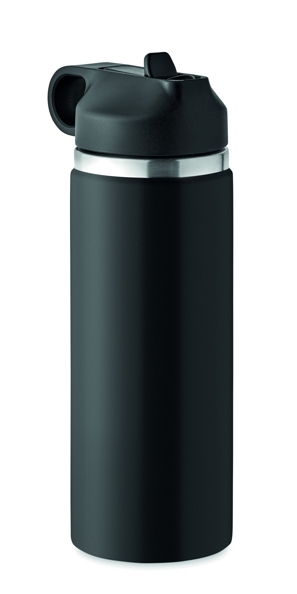 Термобутылка с двойными стенками из переработанной нержавеющей стали 90% и 10% нержавеющей стали с крышкой из полипропилена, ручкой и встроенной соломинкой. Герметична. Емкость: 500 мл.