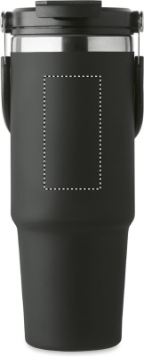 Double wall recycled stainless steel (90% recycled stainless steel and 10% stainless steel) tumbler with lid with inner straw, foldable mouth piece and direct drinking opening . Capacity 850 ml.