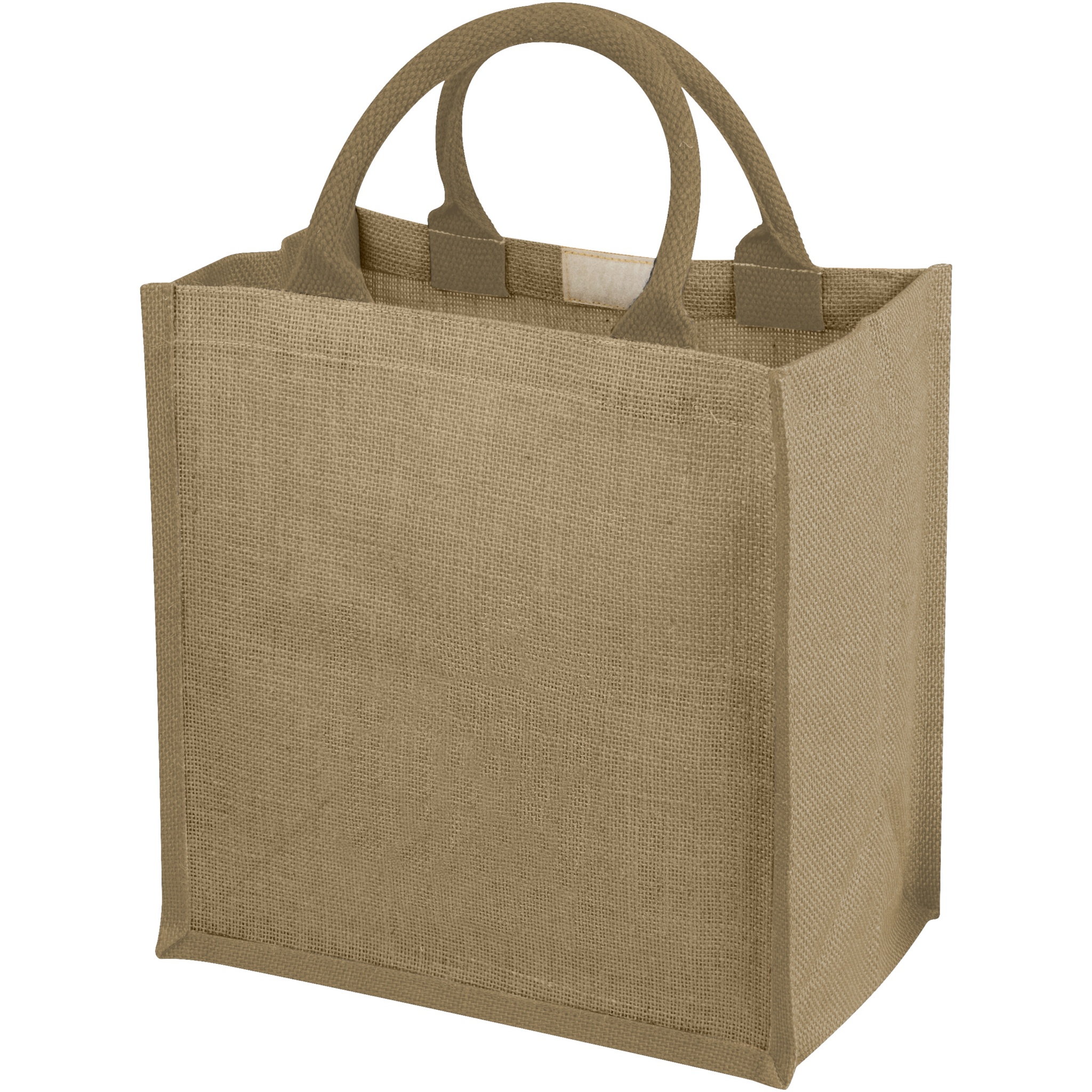 Сумка-тоут Chennai - идеальный партнер для походов в парк, на пляж или в продуктовый магазин. Благодаря джутовому материалу она является экологичным выбором. Сумка имеет ламинированное открытое отделение и ластовицу, что делает её идеальной для переноски тяжёлых предметов. Хлопковые ручки гарантируют хороший и удобный захват, а дополнительная застежка-крючок и петли обеспечивают сохранность всех вещей. Сделано в Индии и сертифицировано OEKO-Tex. Устойчивость к весу до 10 кг.