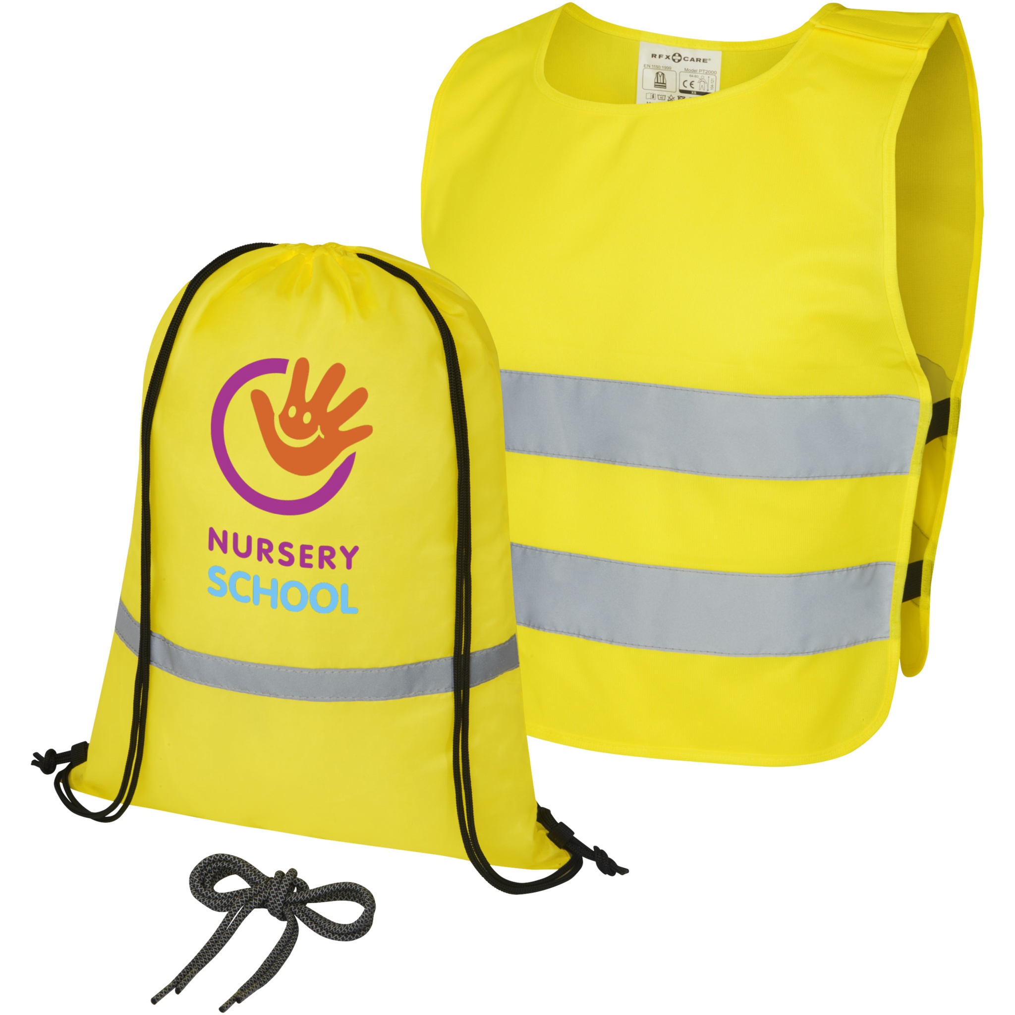 Полный комплект для обеспечения безопасности и видимости детей в возрасте от 7 до 12 лет. Этот подарочный комплект "назад в школу" состоит из светоотражающего рюкзака со шнурком, защитного жилета и комплекта светоотражающих шнурков. Светоотражающий рюкзак имеет большое отделение с застежкой на шнурке, он протестирован и сертифицирован согласно EN 1150:1999. Светоотражающий жилет размером XS подходит для детей в возрасте 7–12 лет, рост 104–121 см. Большая зона для декорирования спереди и сзади жилета. На плечах и нижних эластичных лентах имеются застежки на «липучке», которые обеспечивают дополнительную безопасность и облегчают надевание жилета. Эластичные завязки на другой стороне позволяют регулировать размер жилета, поэтому его можно легко надеть на верхнюю одежду. Жилет протестирован и сертифицирован согласно EN 1150:1999. Он также соответствует руководящим принципам по применению Регламента (ЕС) 2016/425 об индивидуальных средствах защиты категории II. Светоотражающие шнурки длиной 80 см с прочными концами с обеих сторон для простой шнуровки любой обуви.