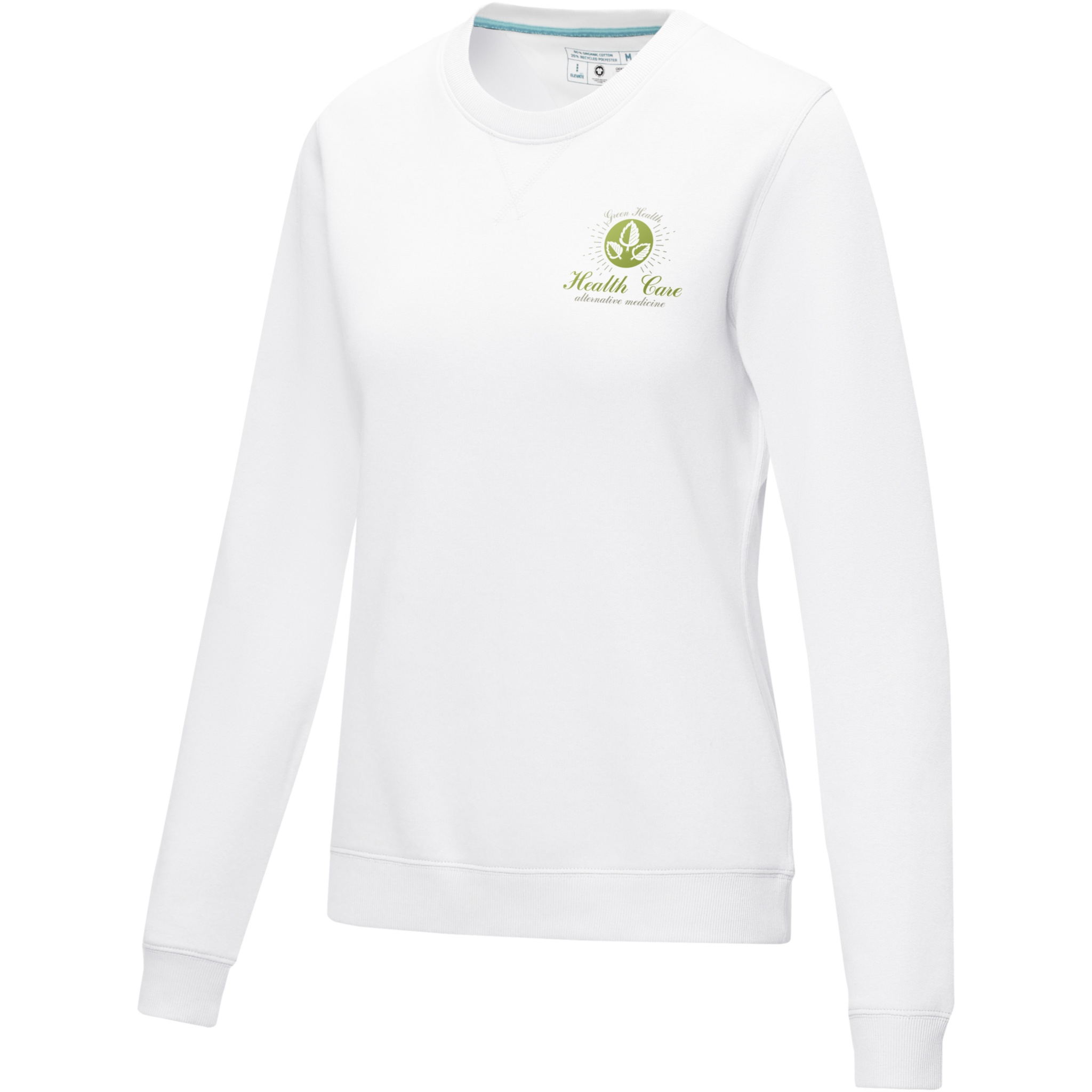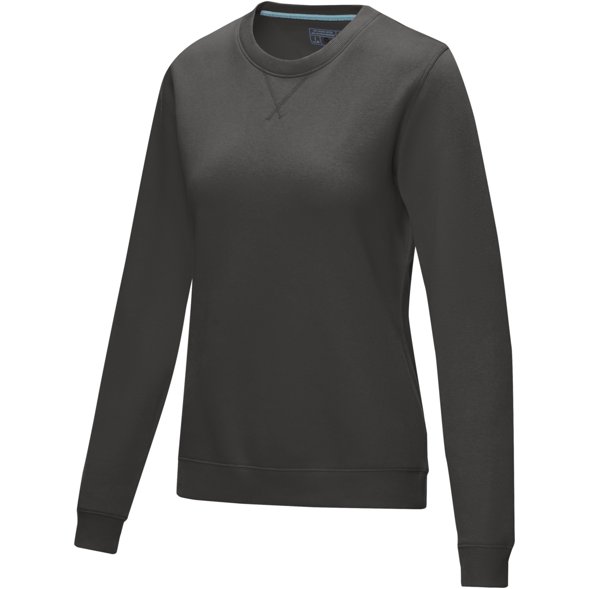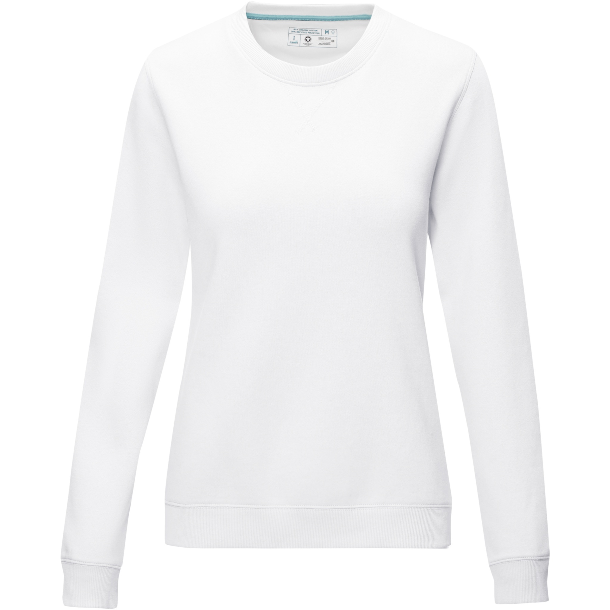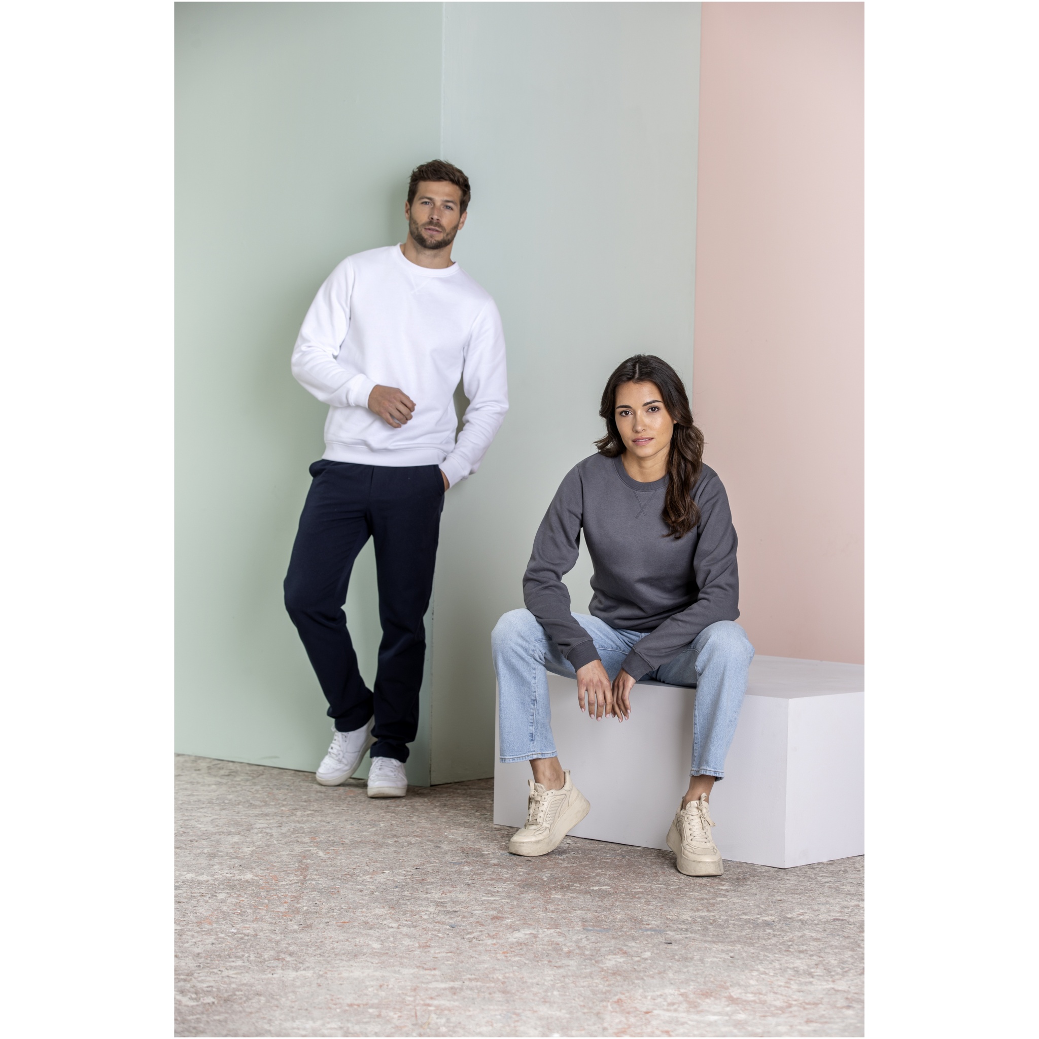 The Jasper women's organic recycled crewneck sweater – a fusion of style and sustainability. This sweater blends eco-conscious fashion with comfort, featuring a flat knit rib v-insert at centre front. With a soft brushed interior, it ensures a cozy feel. Made from a 280 g/m² blend of organic cotton and recycled polyester. This sweater is designed with a fitted shape for a feminine look.