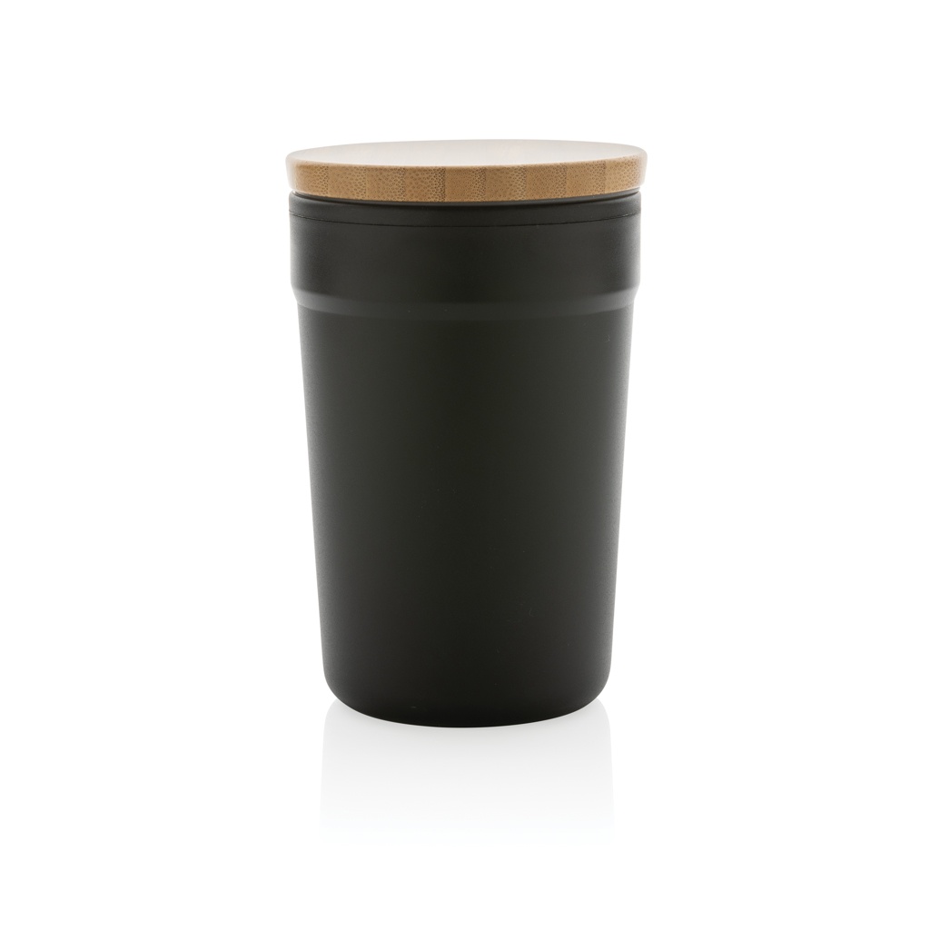 Кружка из переработанного полипропилена, сертифицированная GRS, с бамбуковой крышкой, черный