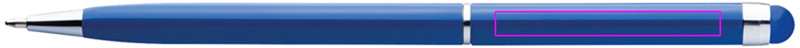Шариковая ручка из нержавеющей стали с синим пластиковым стержнем и цветной сенсорной функцией над зажимом. Мы выгравируем ваш логотип под зажимом.