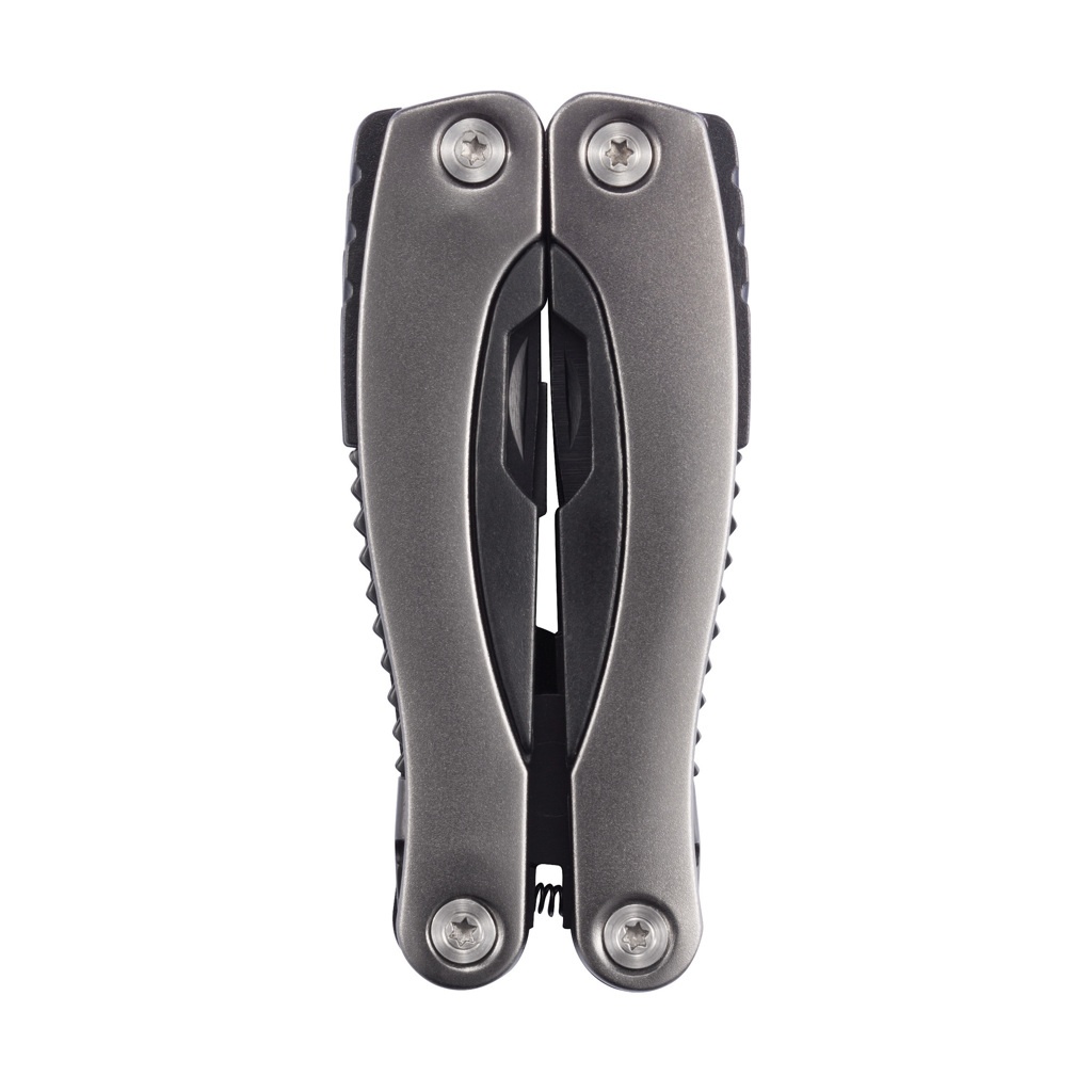 14 функций, черный многофункциональный инструмент из нержавеющей стали с ручкой из анодированного алюминия. Включает черный чехол.