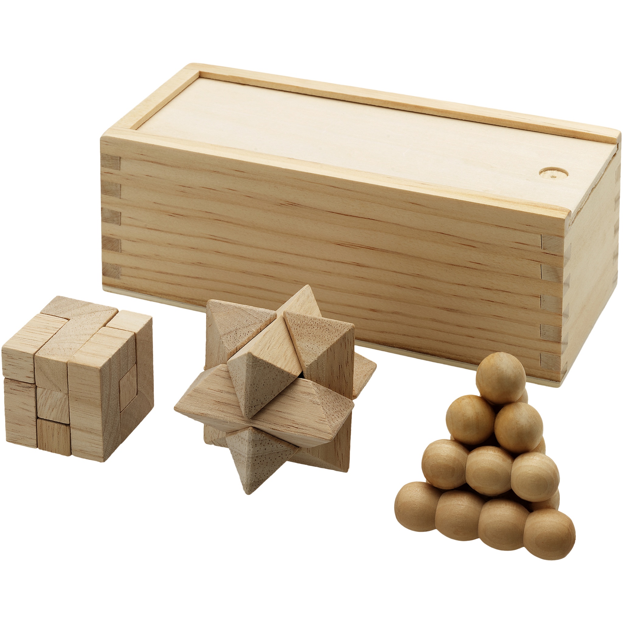 Набор из 3 головоломок в деревянной подарочной коробке. Нанесение не предлагается на детали головоломки.