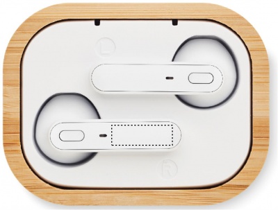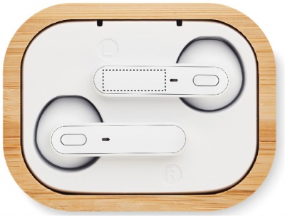 Комплект из 2 наушников True Wireless Stereo (TWS) 5.0 в бамбуковом чехле со встроенным аккумулятором 30 мАч. Время воспроизведения около 3 часов. В комплекте кабель для зарядки micro USB и зарядная станция 185 мАч.