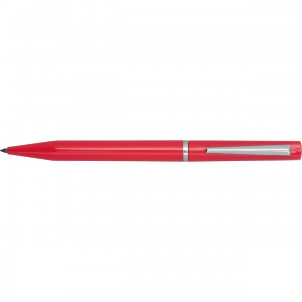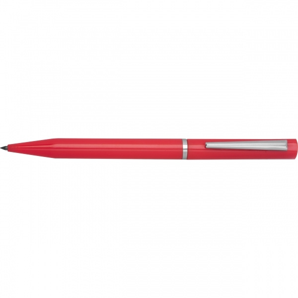 Письменный набор, состоящий из шариковой ручки с синим стержнем, ручки с бесчернильным стержнем и картонной коробки. Обе ручки изготовлены из переработанного АБС-пластика. Ваш логотип напечатан на обоих пишущих инструментах.