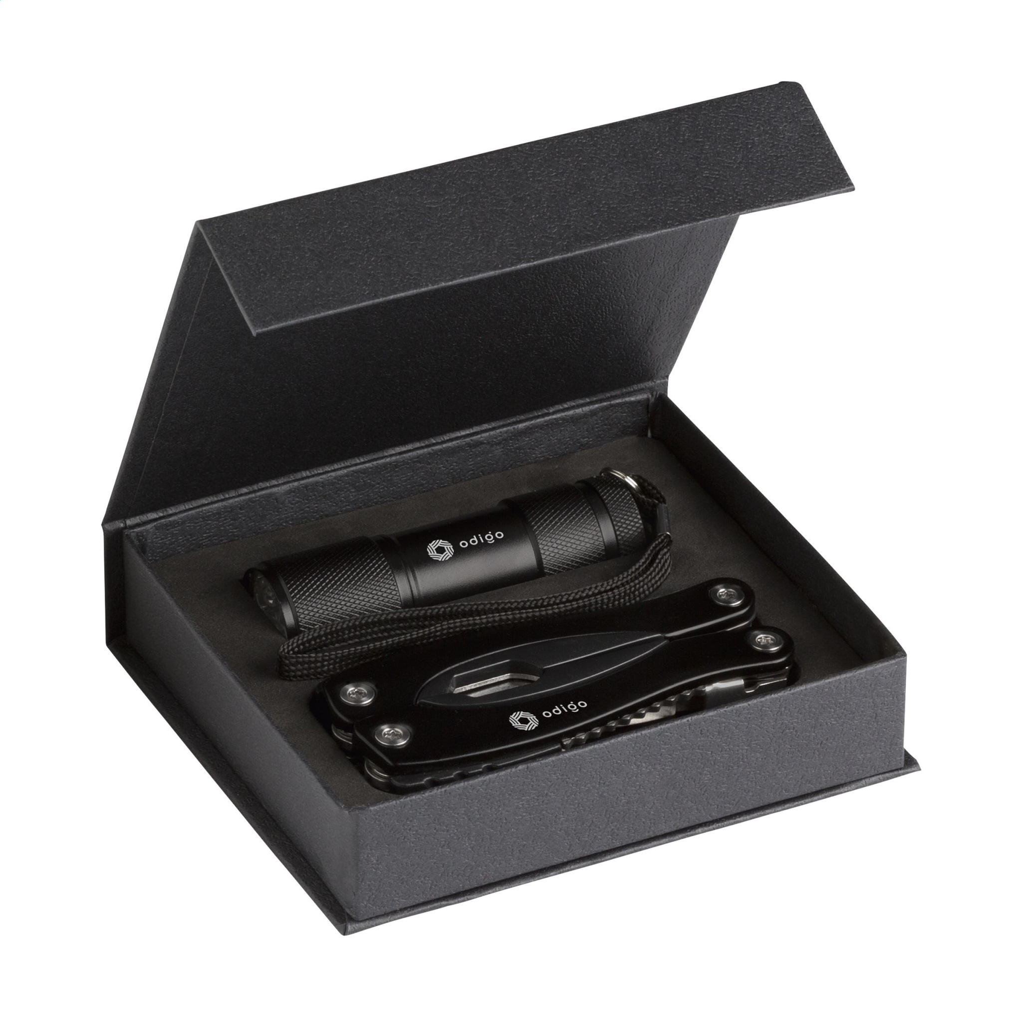 Функциональный и полный подарочный набор: многофункциональный инструмент из нержавеющей стали из 9 предметов с 12 функциями (щипцы, инструмент для зачистки проводов, пила, 2 отвертки, консервный нож, съемник крышек, напильник, нож, крестовая отвертка, скребок для рыбы, инструмент для снятия крючков) и алюминиевой ручкой и металлическим внешним видом. Алюминиевый фонарик (Ø 2,7 x 9 см) с 9 яркими белыми энергосберегающими светодиодами и съемной петлей. Батарейки включены. Каждый набор в коробке. Обратите внимание, что могут применяться местные правила в отношении хранения и/или ношения ножей или многофункциональных инструментов в общественных местах. Предметы поставляются в наборе, каждый набор в индивидуальной упаковке.