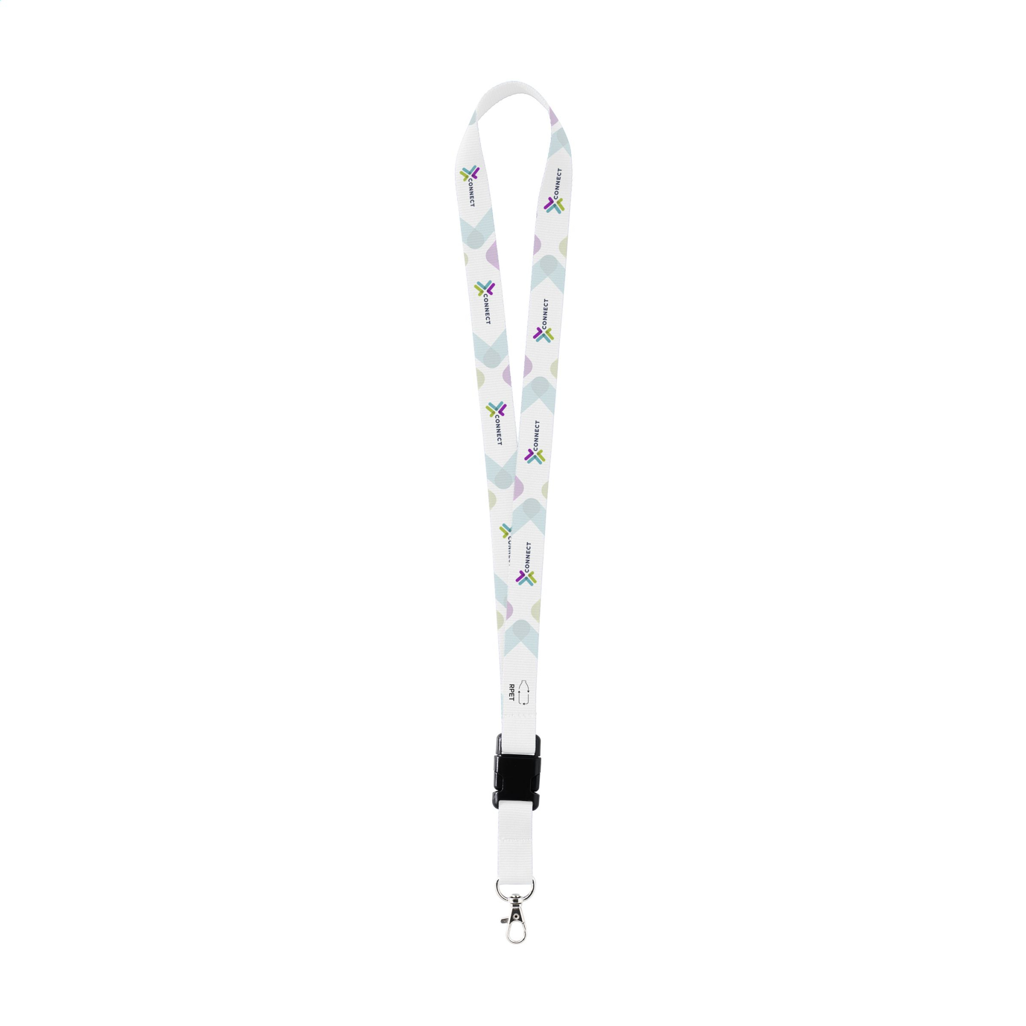 Прочный плетеный шнур из полиэстера RPET. Поставляется с металлическим карабином. Нижняя часть этого изделия может быть отсоединена с помощью пластиковой пряжки. Включает полноцветную сублимационную печать. Сделано в Европе.