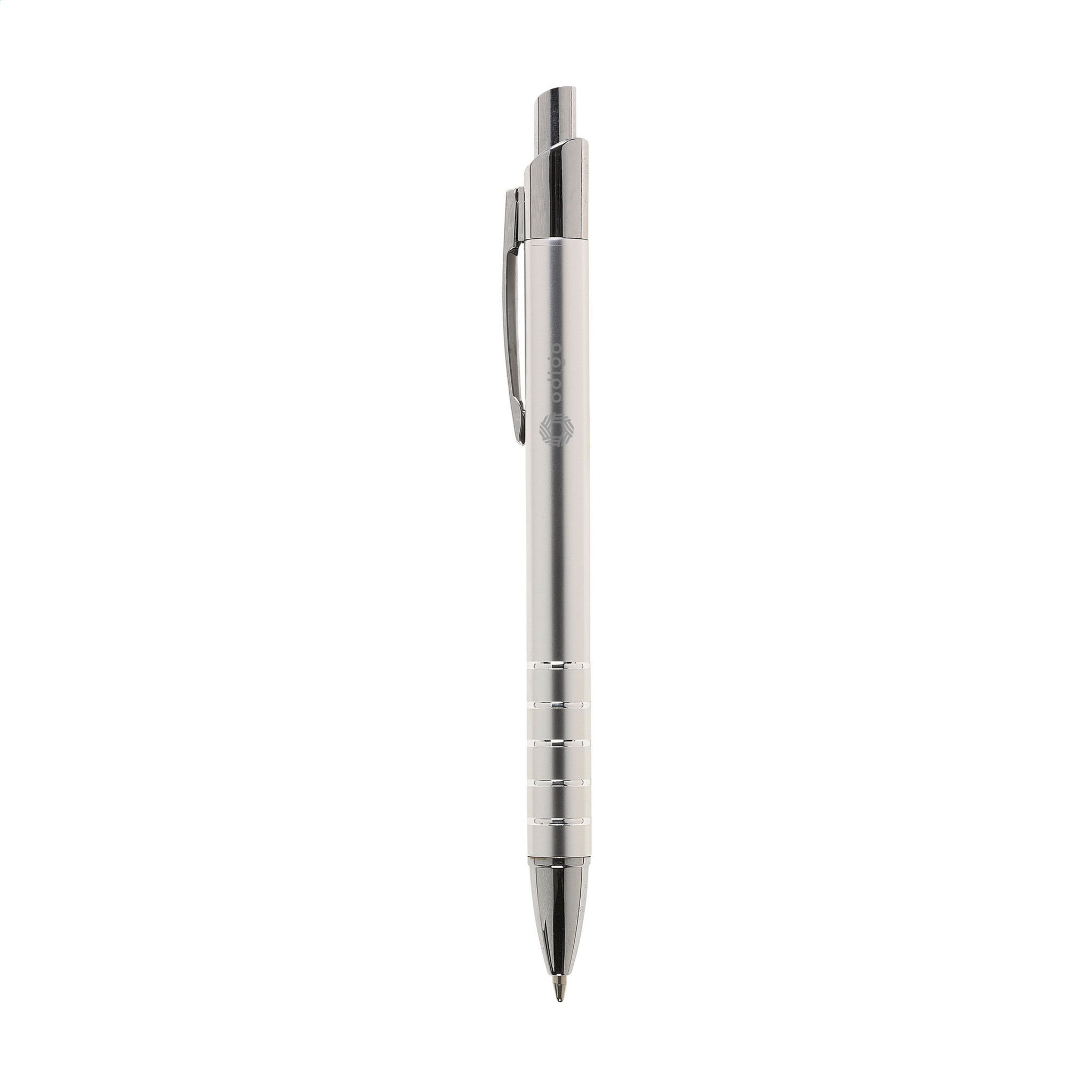 Шариковая ручка из алюминия с синими чернилами и металлическим эффектом, с металлическим зажимом и отделкой.