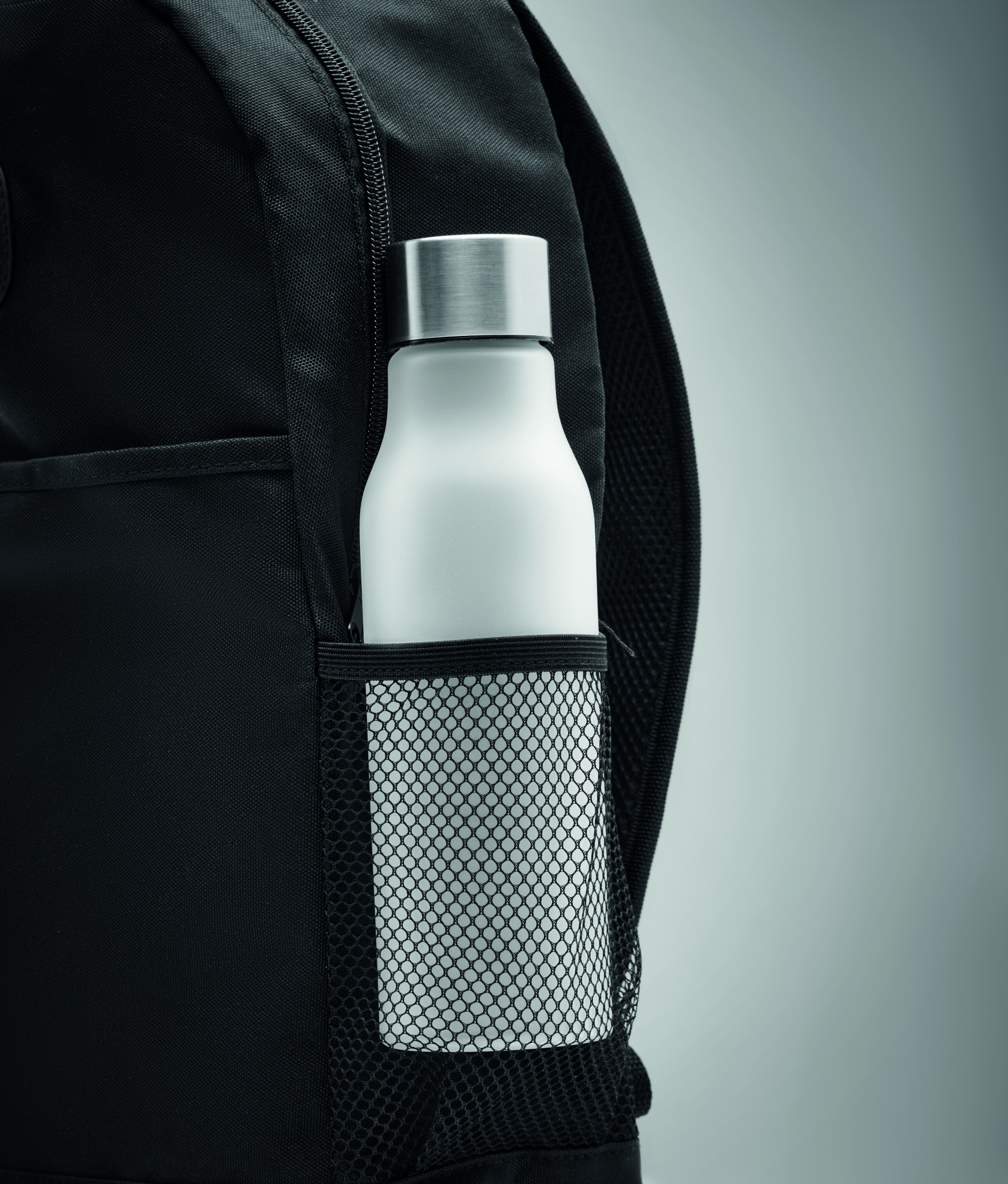 Рюкзак из 600D RPET со съемным фонариком спереди. Передний карман на липучке. Сетчатый карман на боку. Батарейка включена.