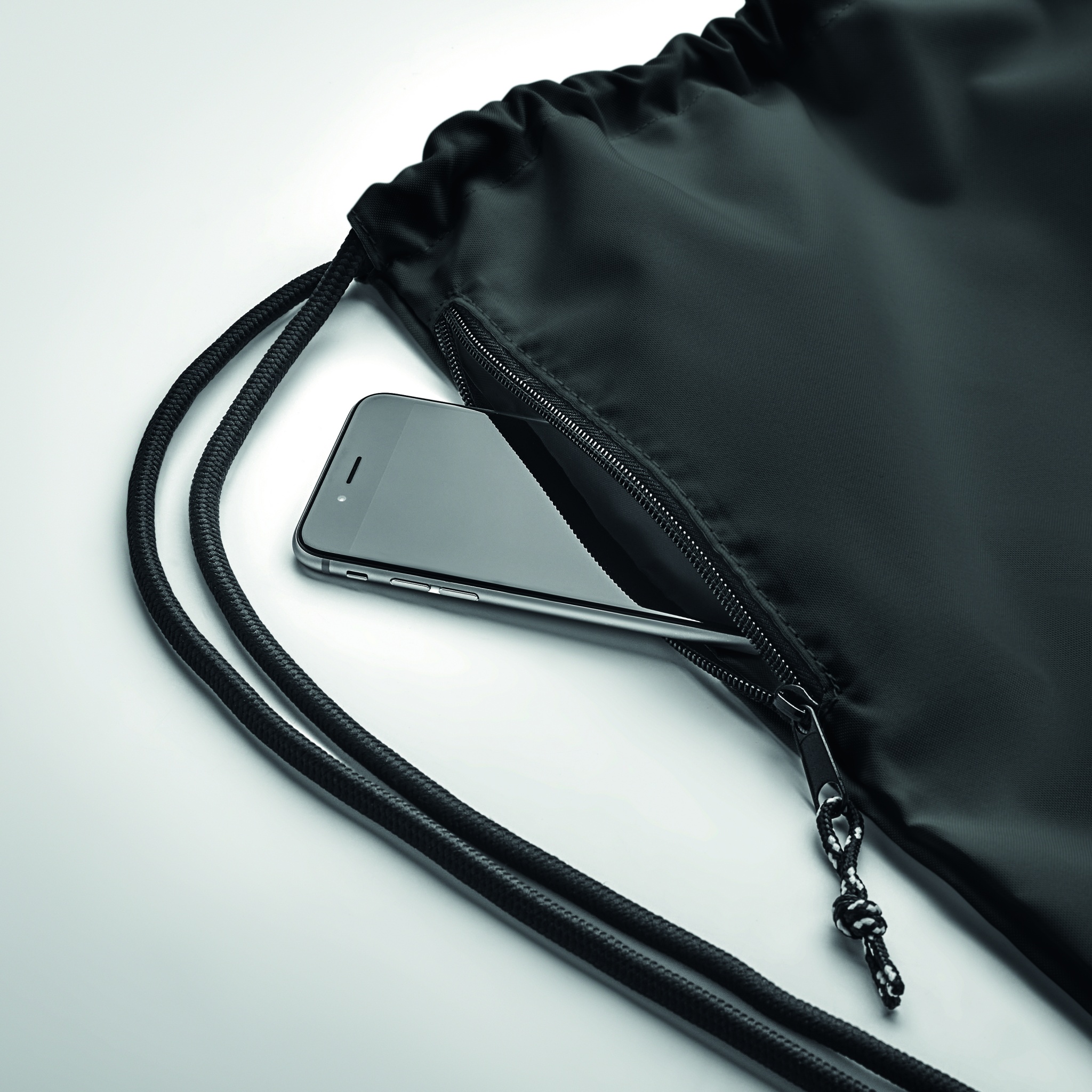 Большой рюкзак-мешок из полиэстера 300D RPET с боковым наружным карманом на молнии.
