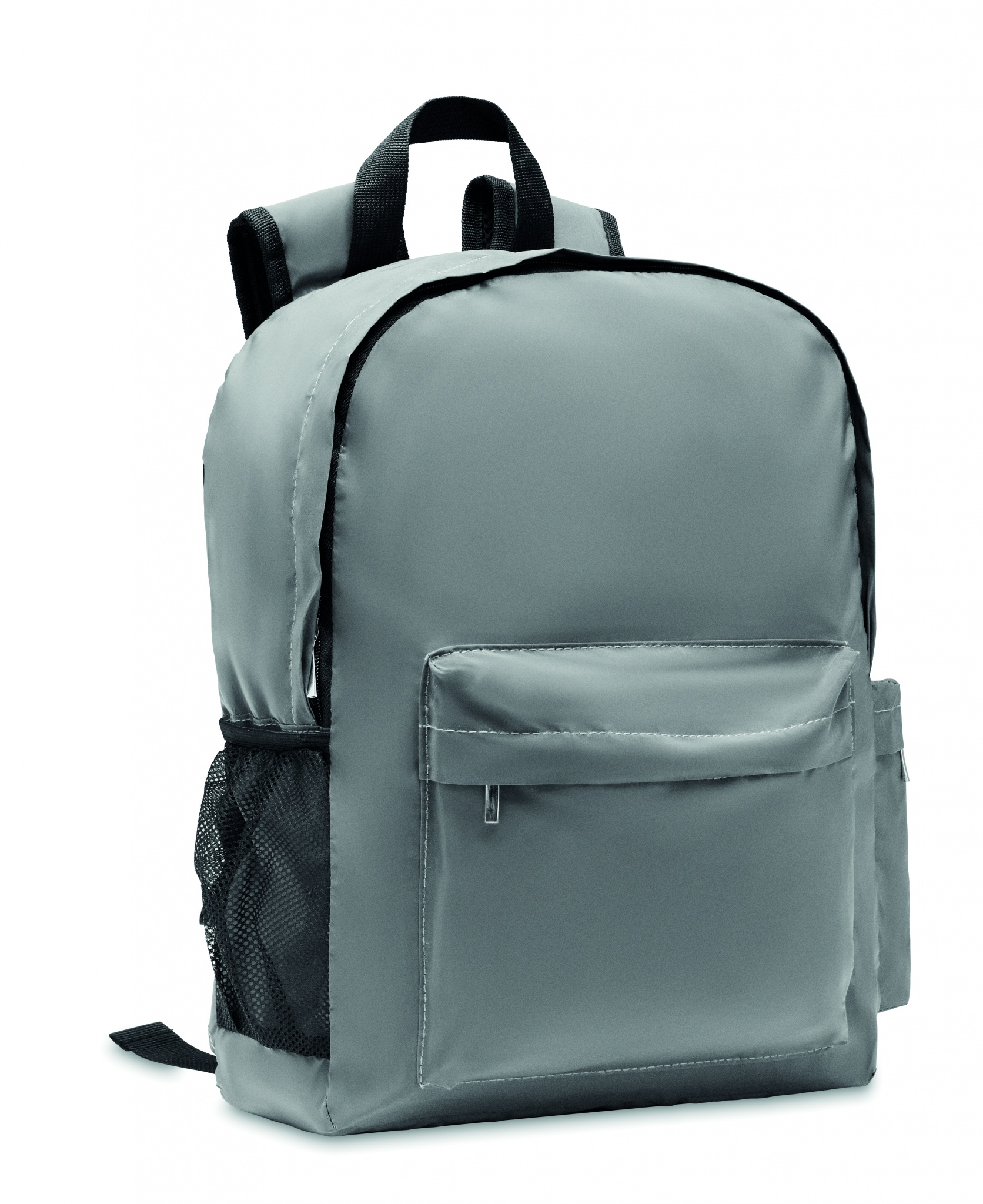 Рюкзак светоотражающий из полиэстера 190T. Имеет отделение для ноутбука 15 дюймов. Передний карман на молнии, боковой сетчатый карман и боковой карман на молнии. Для комфорта мягкая спинка из переработанного полиэстера 600D.