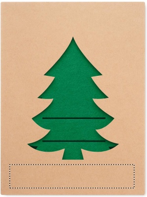 Набор из 4 фетровых (RPET) салфеток для столовых приборов в форме новогодней елки. Упакован в крафт-коробку
