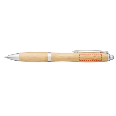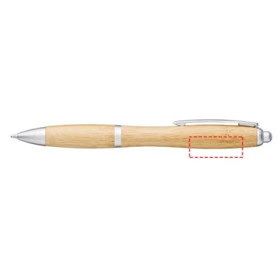 Экологически чистая кнопочная шариковая ручка с корпусом из бамбука, хромированным зажимом и отделкой из АБС-пластика. Цвет бамбукового материала может отличаться.