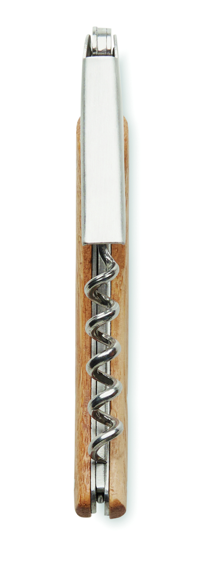 Stainless steel original waiter's knife with double corkscrew opener and bamboo surface.