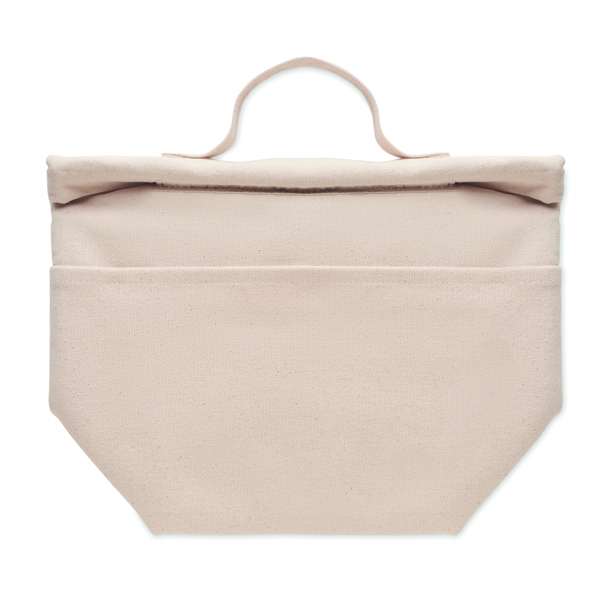 Сумка-холодильник для ланча из переработанного хлопка с застежкой на крючок и петлю. Термоизоляция: 3 мм пенополиэтилен и 12C PEVA.