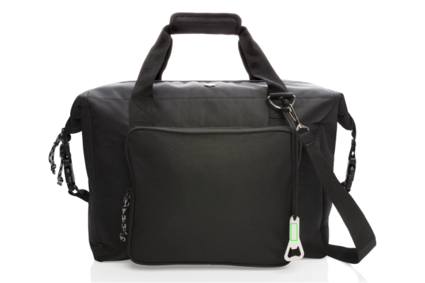 Сумка-холодильник Deluxe 1680D и 600D из полиэстера с очень большим основным отделением на молнии и передним карманом на молнии. Легко трансформируется в сумку-холодильник, застегнув боковые ремни. Огромное пространство для хранения объемом 40 л; вмещает до 10 бутылок по 1,5 л или 52 банки. Двойные усиленные ручки для переноски. Съемный регулируемый плечевой ремень. Включает открывалку для пива. Изоляция PEVA.