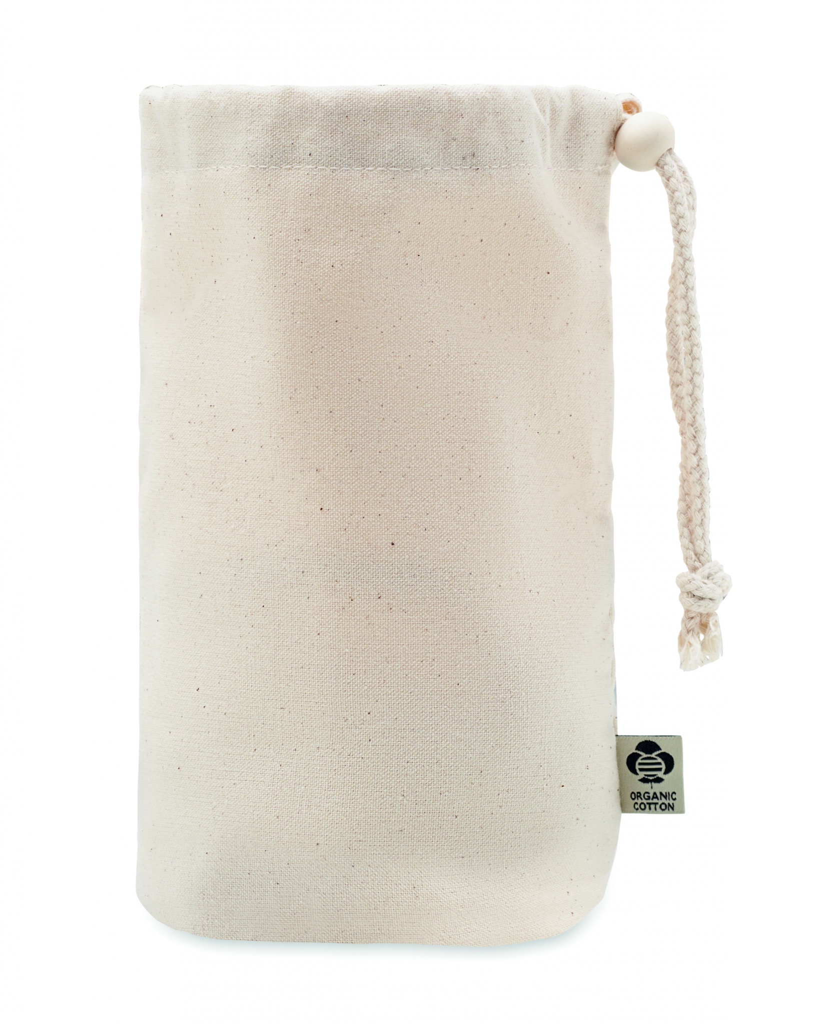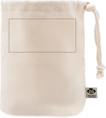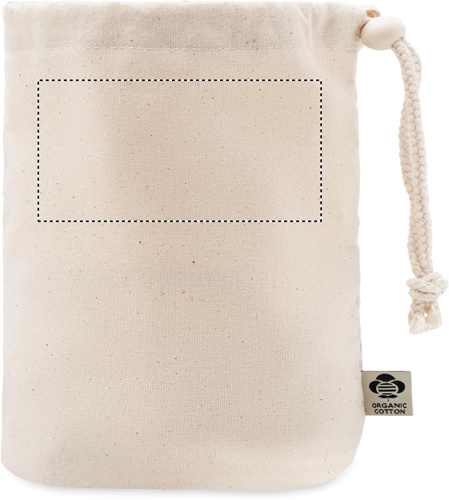Небольшая сумка-мешок для аксессуаров из органического хлопка. 220 гр/м². Имеет внутренние сетчатые отделения и деревянную застежку.