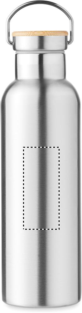 Термос с вакуумной колбой из нержавеющей стали с двойными стенками, бамбуковой крышкой и ручкой для переноски. Объем: 750 мл. Герметична.