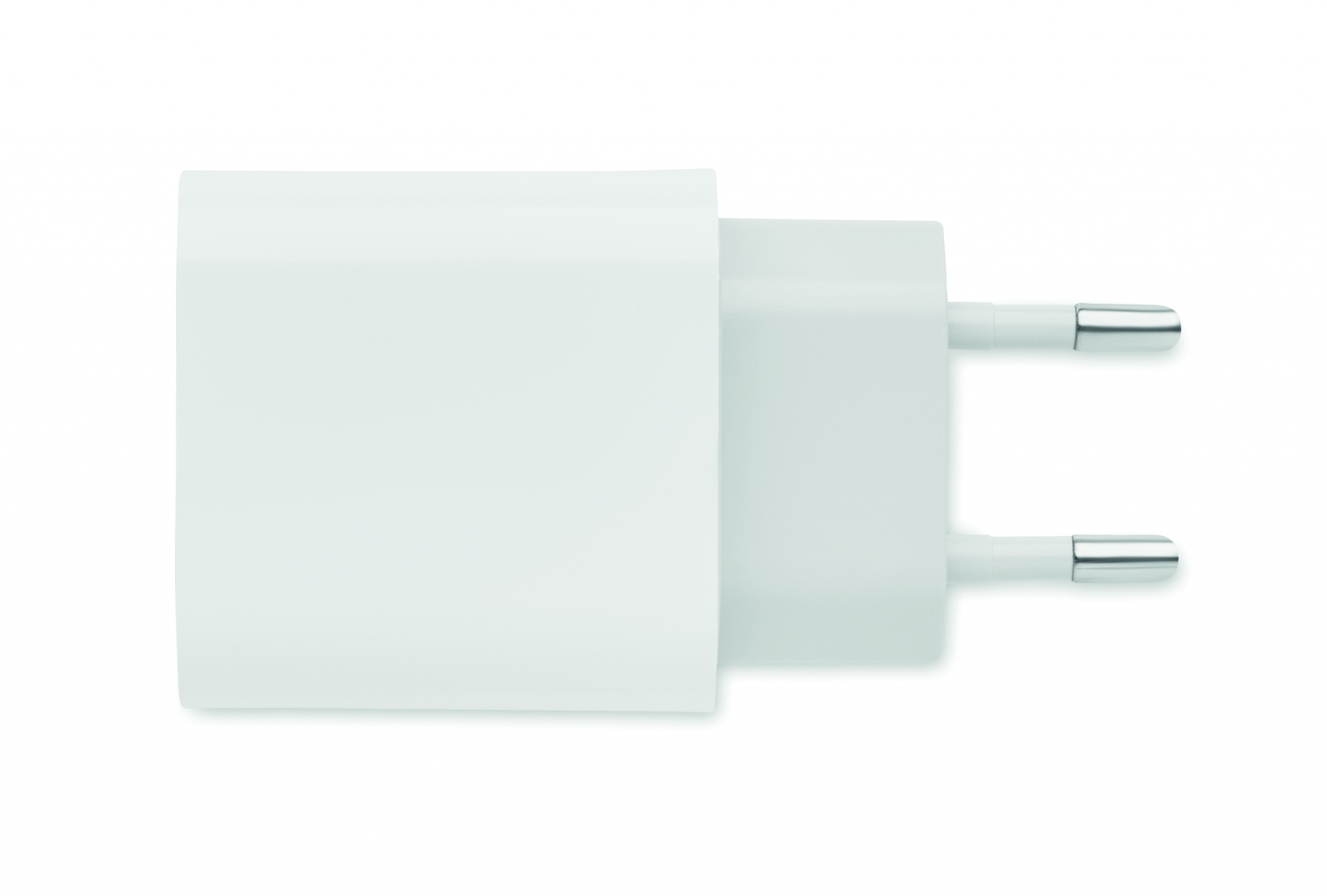 USB Laddare med 2-polig EU-kontakt. Stöder snabbladdningsteknik (18 W). En USB TypA och en USB TypC Stöder snabbladdning 3.0/Power Delivery-teknik. Marknadsförs ej UK.