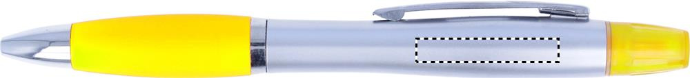 2-i-1 kulpenna i plast och highlighter i silver satin finish och krom beslag. Blått bläck.