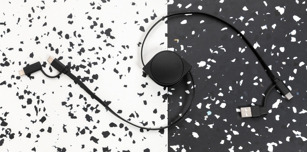 Logotrade kampanjprodukter bild: 6-i-1 kabel i återvunnen plast, RCS standard, och TPE