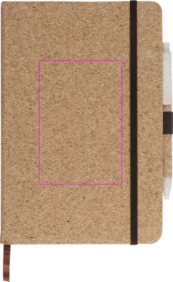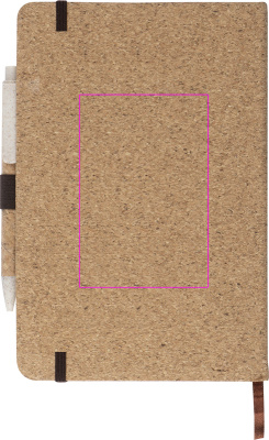 A5 Anteckningsbok i korkpärm med 160 prickade sidor, resårband, pennögla och en kulpenna av vetehalm med korkbeläggning i en kartong. Logotypen kommer att tryckas på boken.