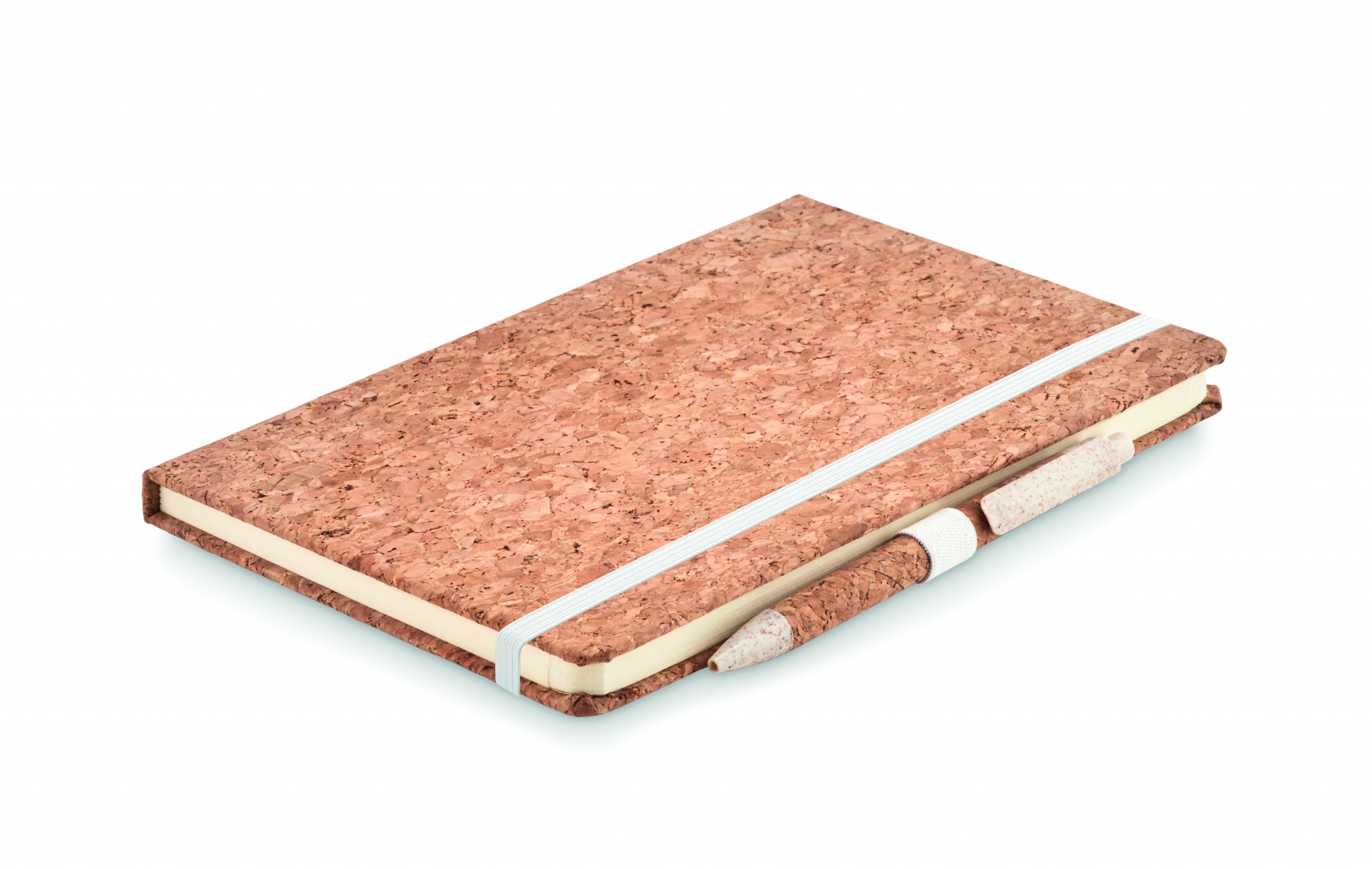 Anteckningsbok i A5 med pärm i kork, linjerade sidor och levereras med penna med kork skaft. Pennans övriga detaljer är gjorda i 50% vetehalm och 50% PP. Kommer i presetask.