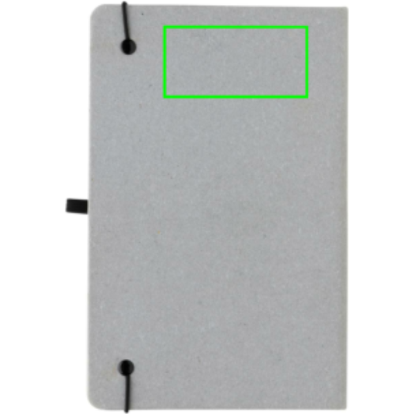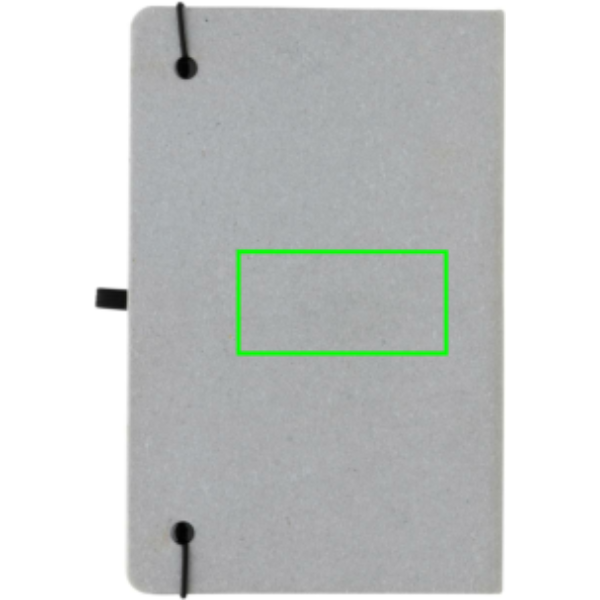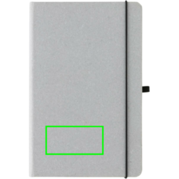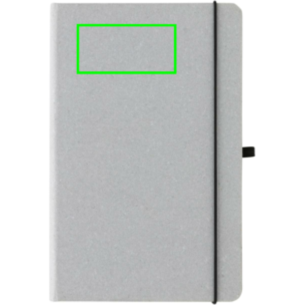 A5 hardcover anteckningsbok i återvunnet läder. Med 80 blad/160 sidor linjerat krämfärgat återvunnet papper, 70 g/m2. Med vertikalt elastiskt band och pennögla.