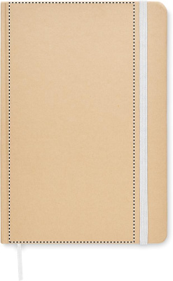 A5-notebook med hård pärm i återvunnen kartong. Inbunden med 160st rutiga återvunna sidor (80 ark). Elastiskt band för stängning och läsband.