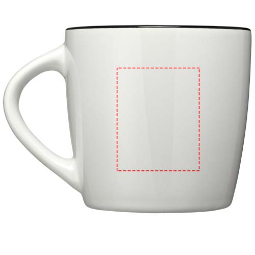 Att dricka kaffe ur en vackert utformad mugg smakar alltid bättre. Så varför inte välja den keramiska muggen Aztec? Den blanka utsidan ger tillräckligt med utrymme för att lägga till en logotyp eller ett meddelande, och färgaccenten på insidan gör att muggen på 340 ml sticker ut ännu mer. Aztec-muggen (inklusive tryck) är diskmaskinssäker enligt EN12875-1 för minst 125 tvättar.