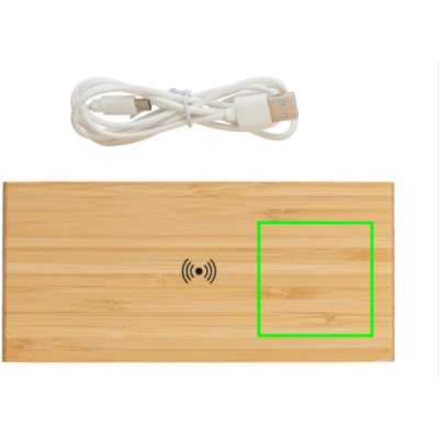 Logotrade reklamprodukter bild: Bambu väckarklocka med 5W trådlös laddning