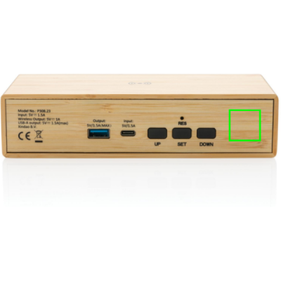 Logotrade kampanjprodukter bild: Bambu väckarklocka med 5W trådlös laddning