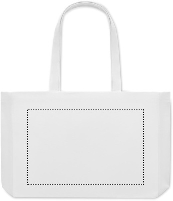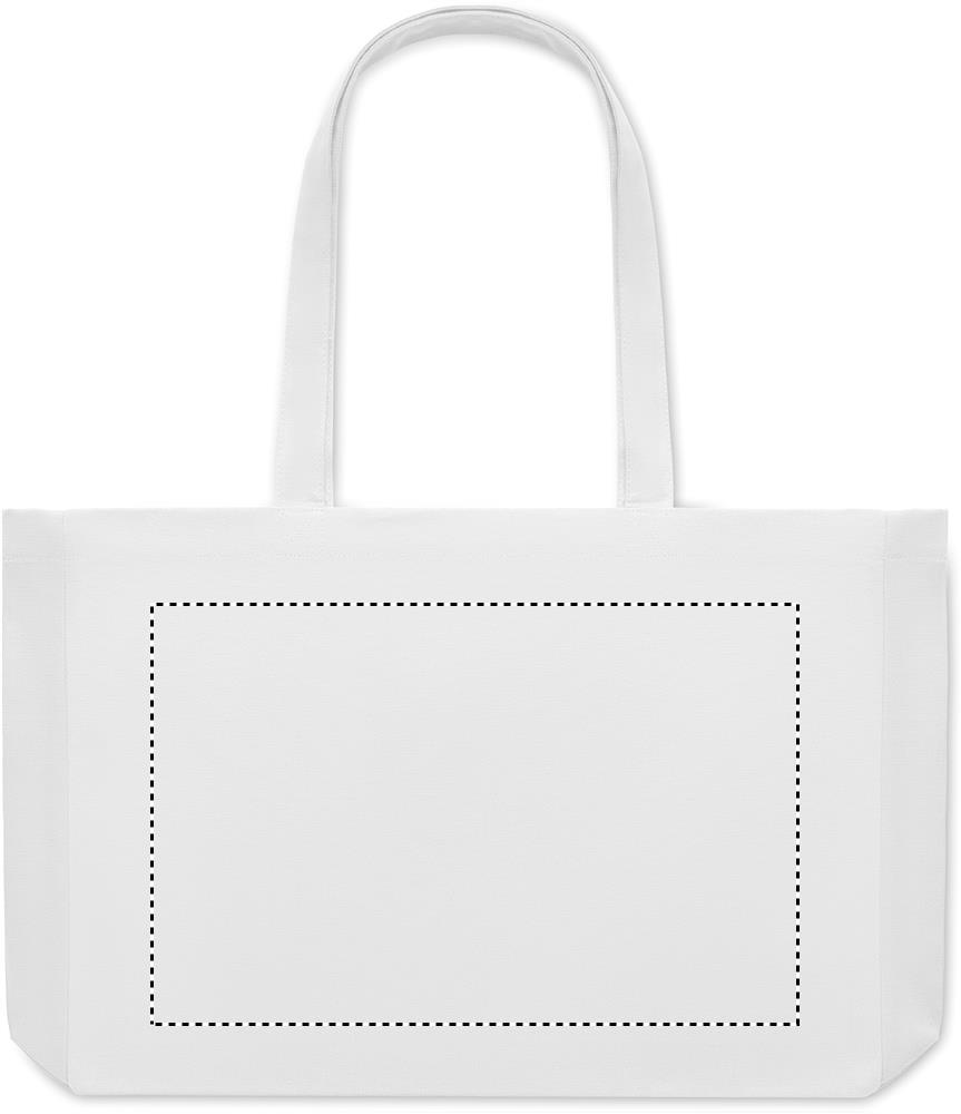 Tygkasse eller strandväska i färgad canvas gjord av 50% bomull och 50% återvunnen bomull. Långa handtag och bälg. Kvalite: 280gr/m².
